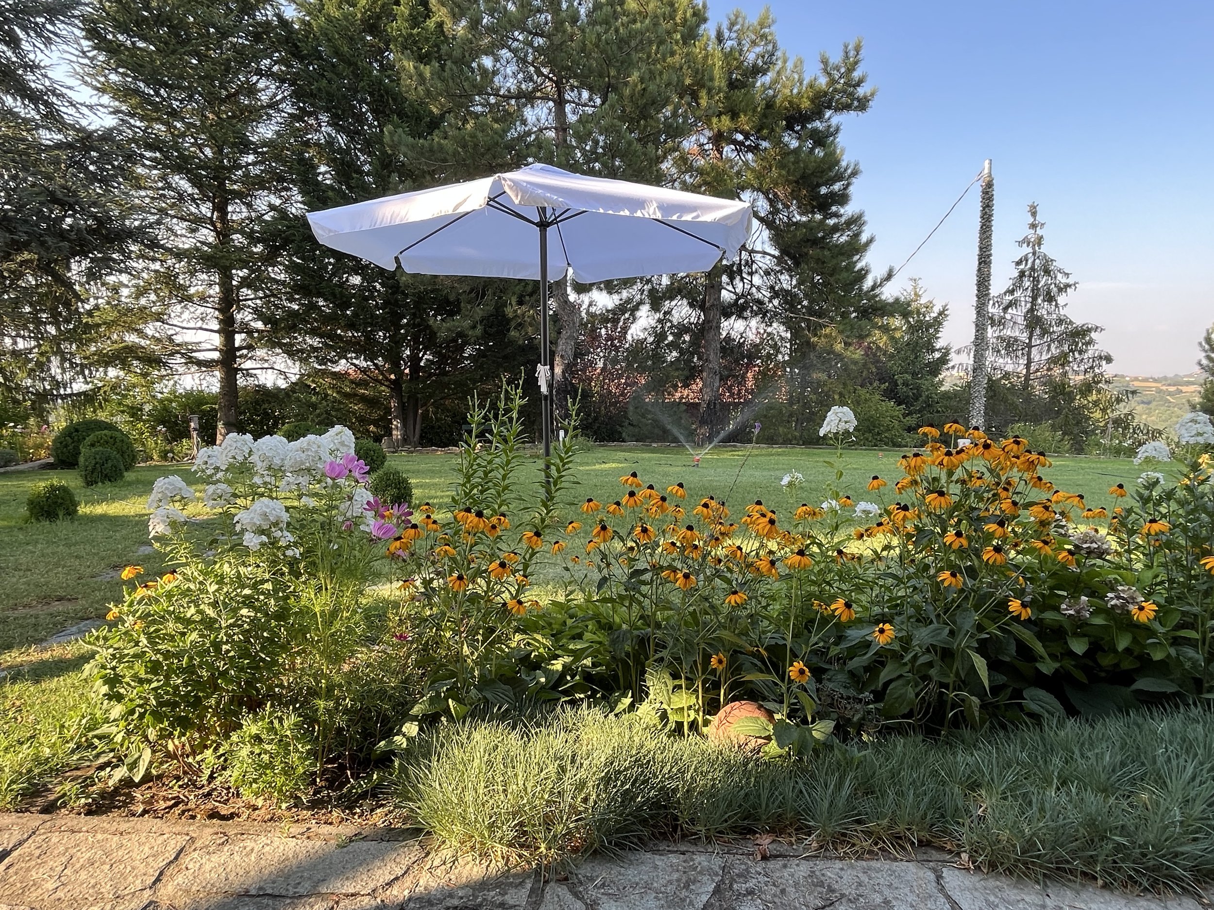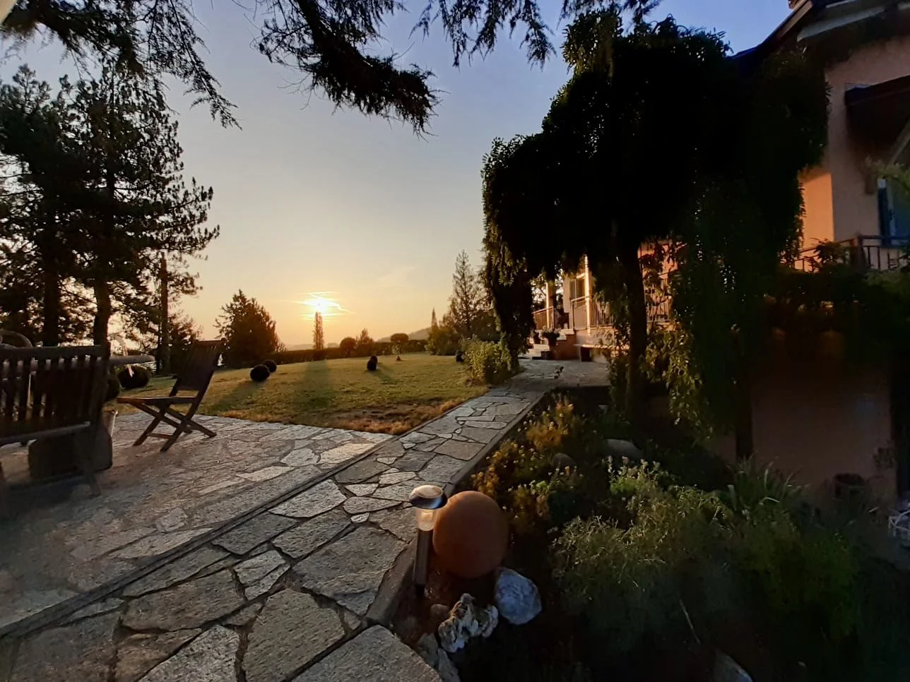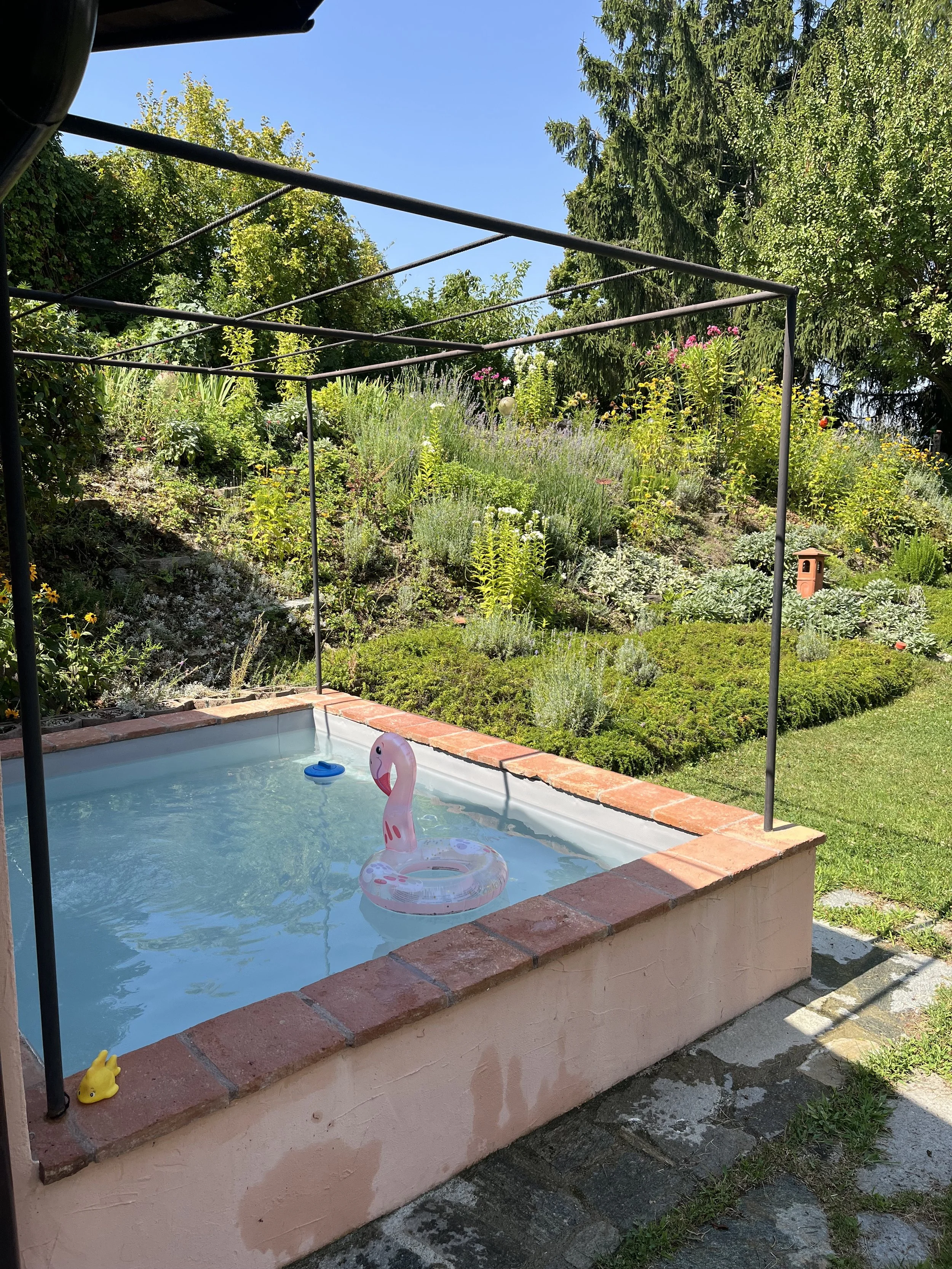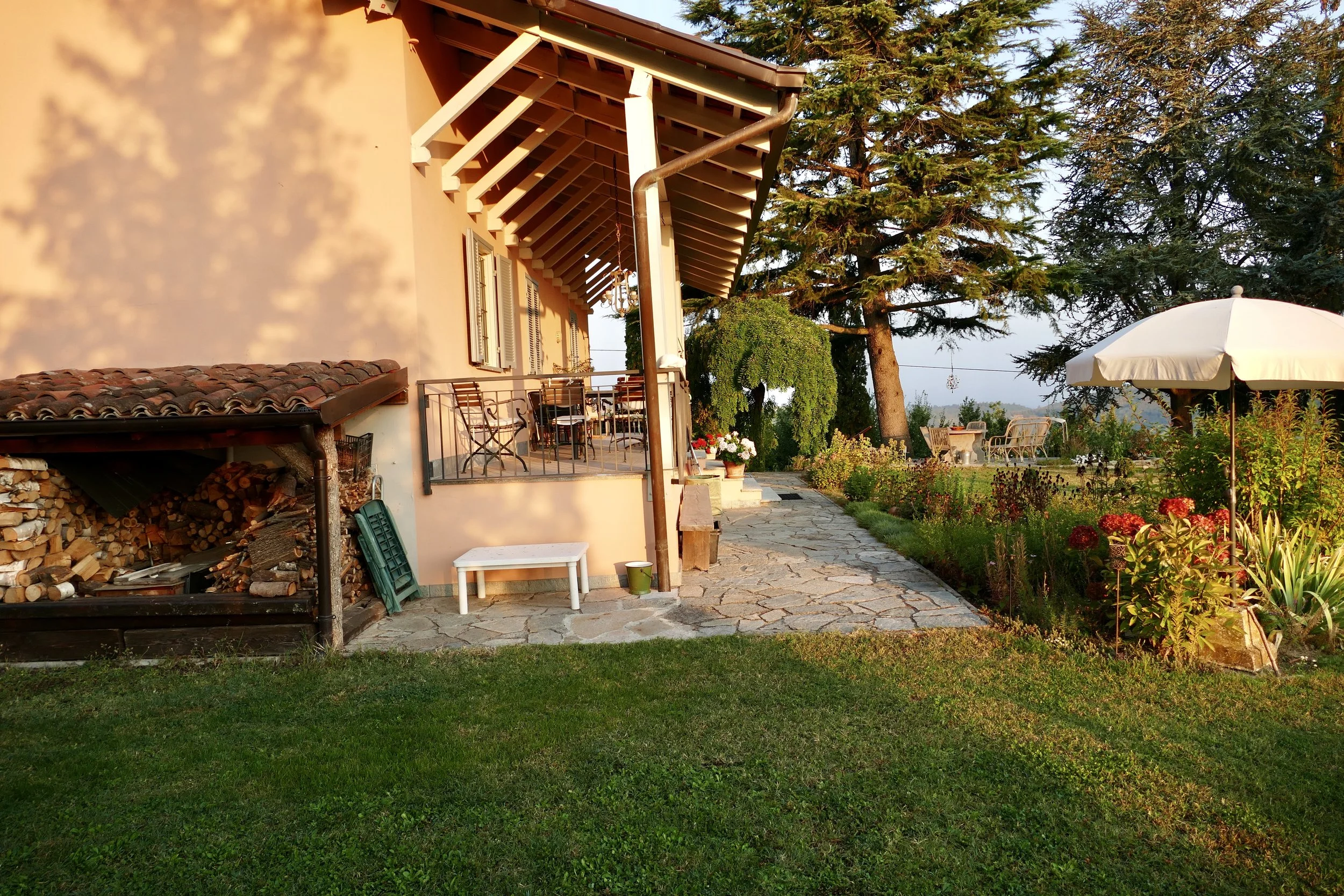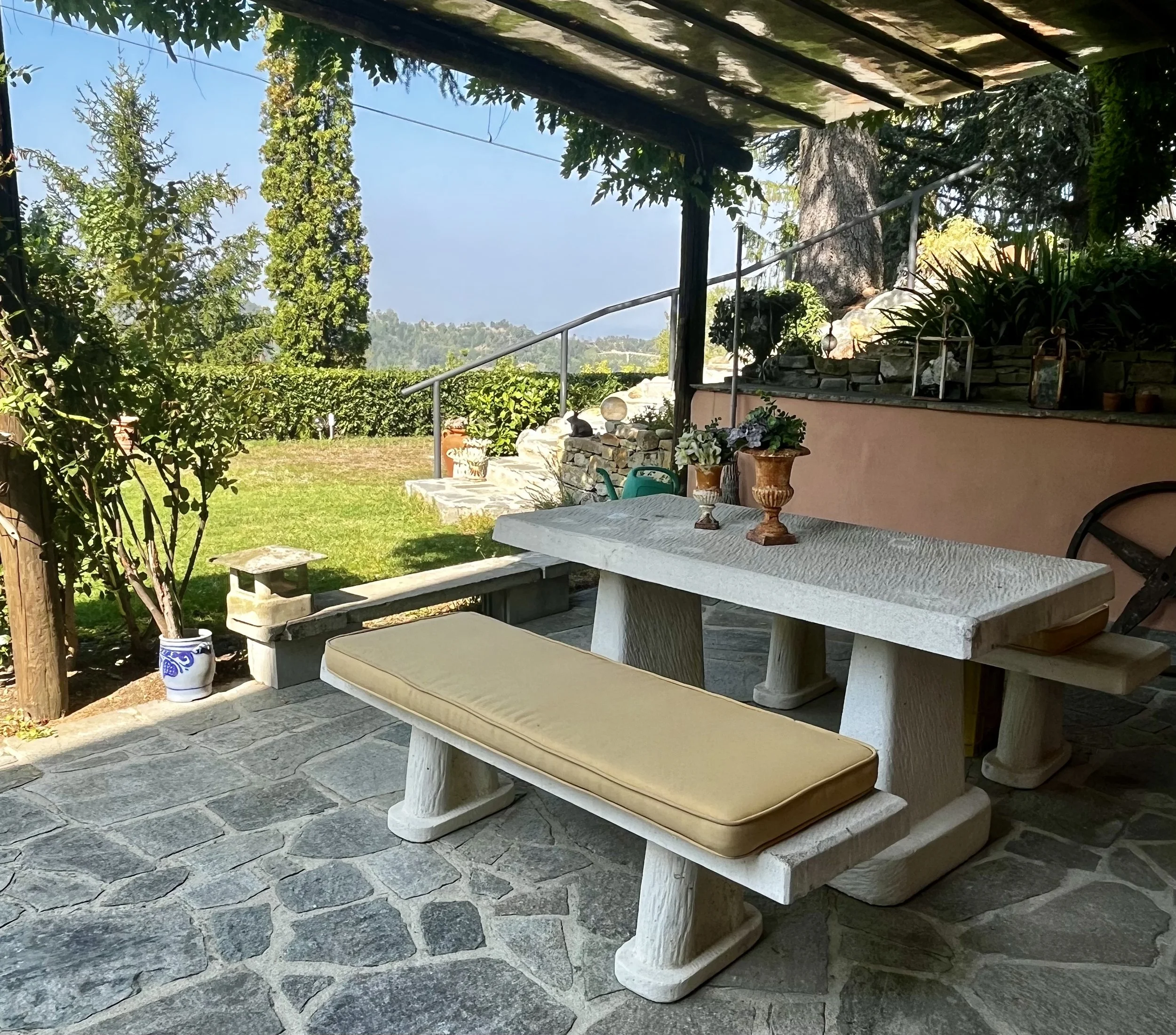 There are many different seating areas in the mature and beautifully landscaped garden. A practical, small outbuilding make the backdrop for the small plunge pool at the south side of the house and external staircases from the wrap-around balcony provide easy access between the house and the garden.