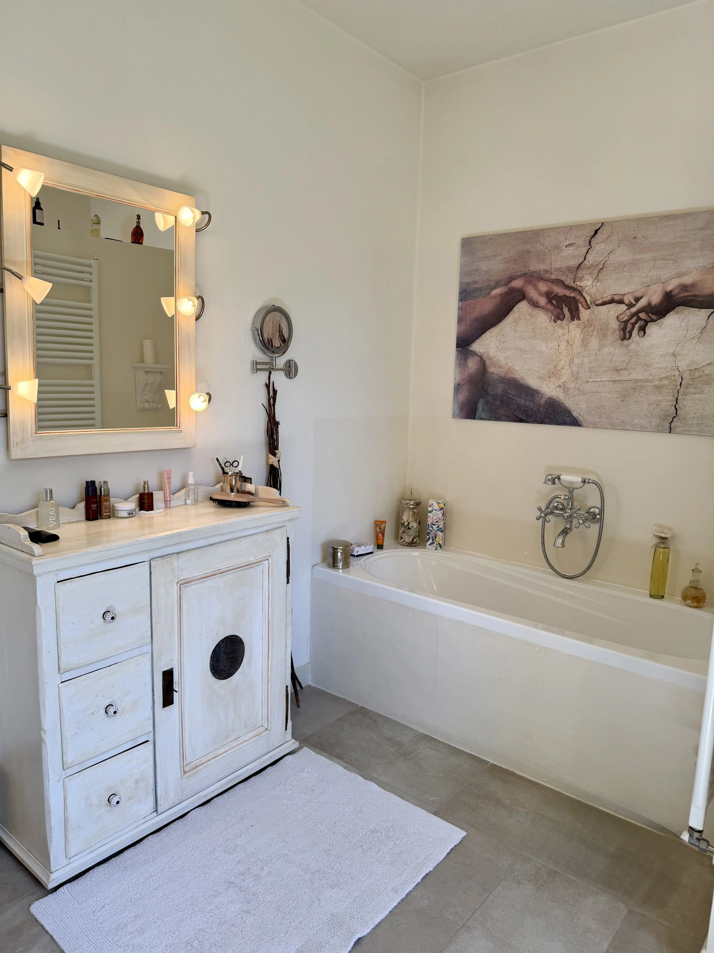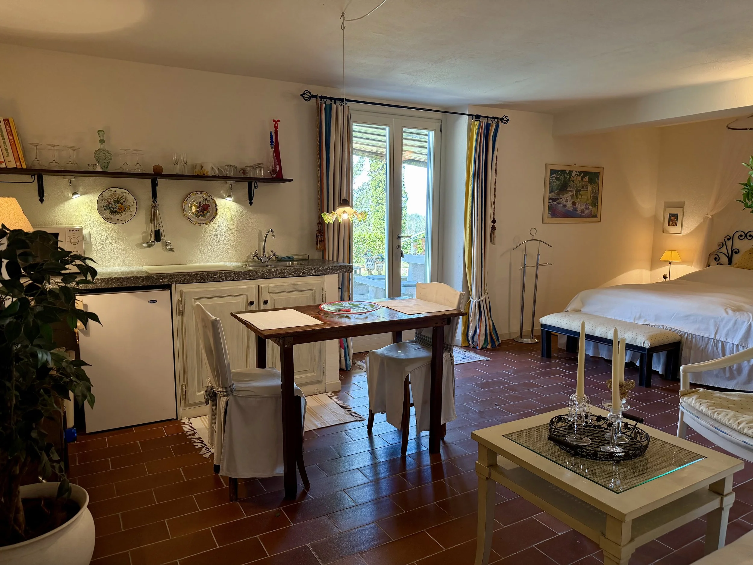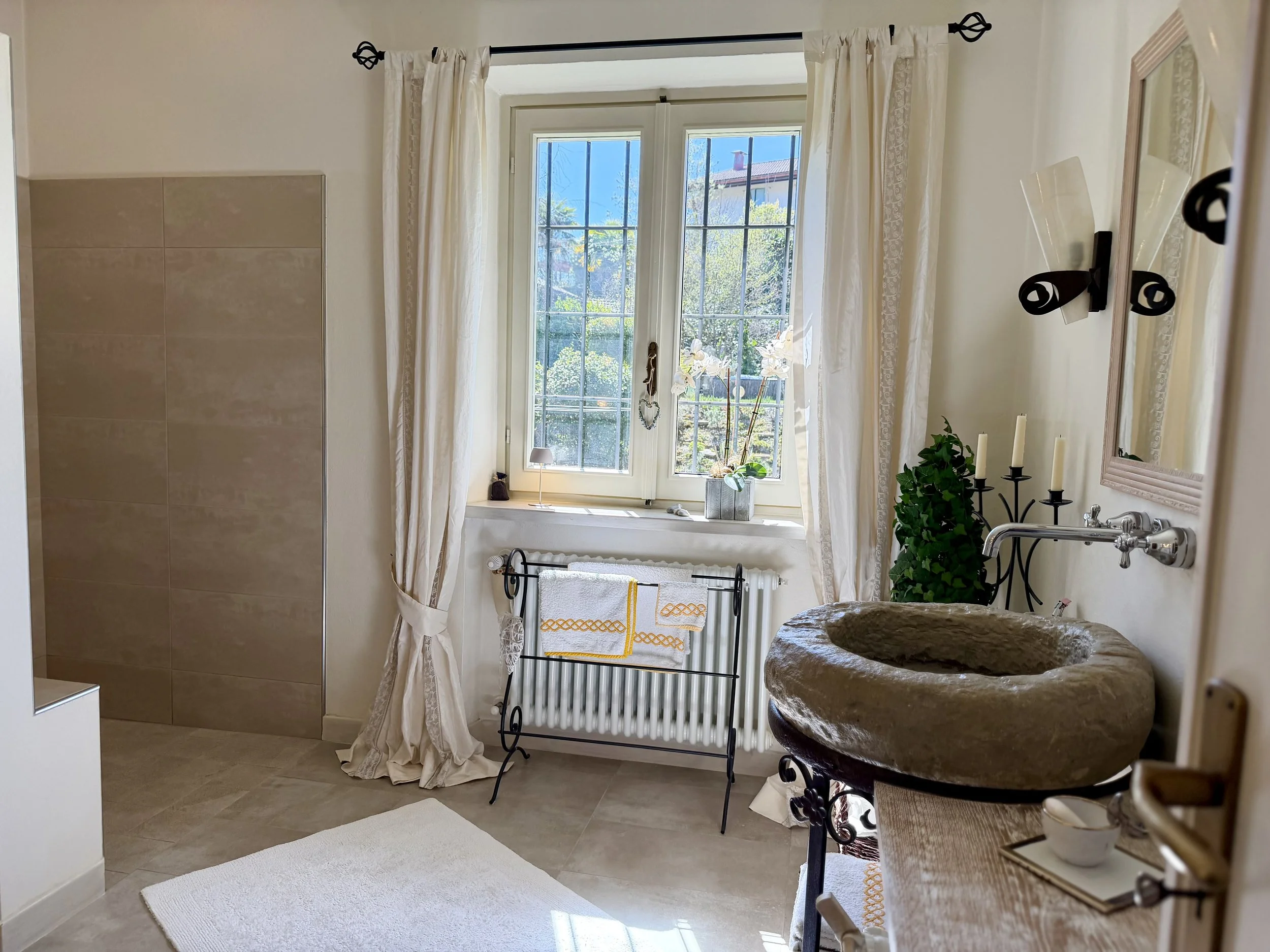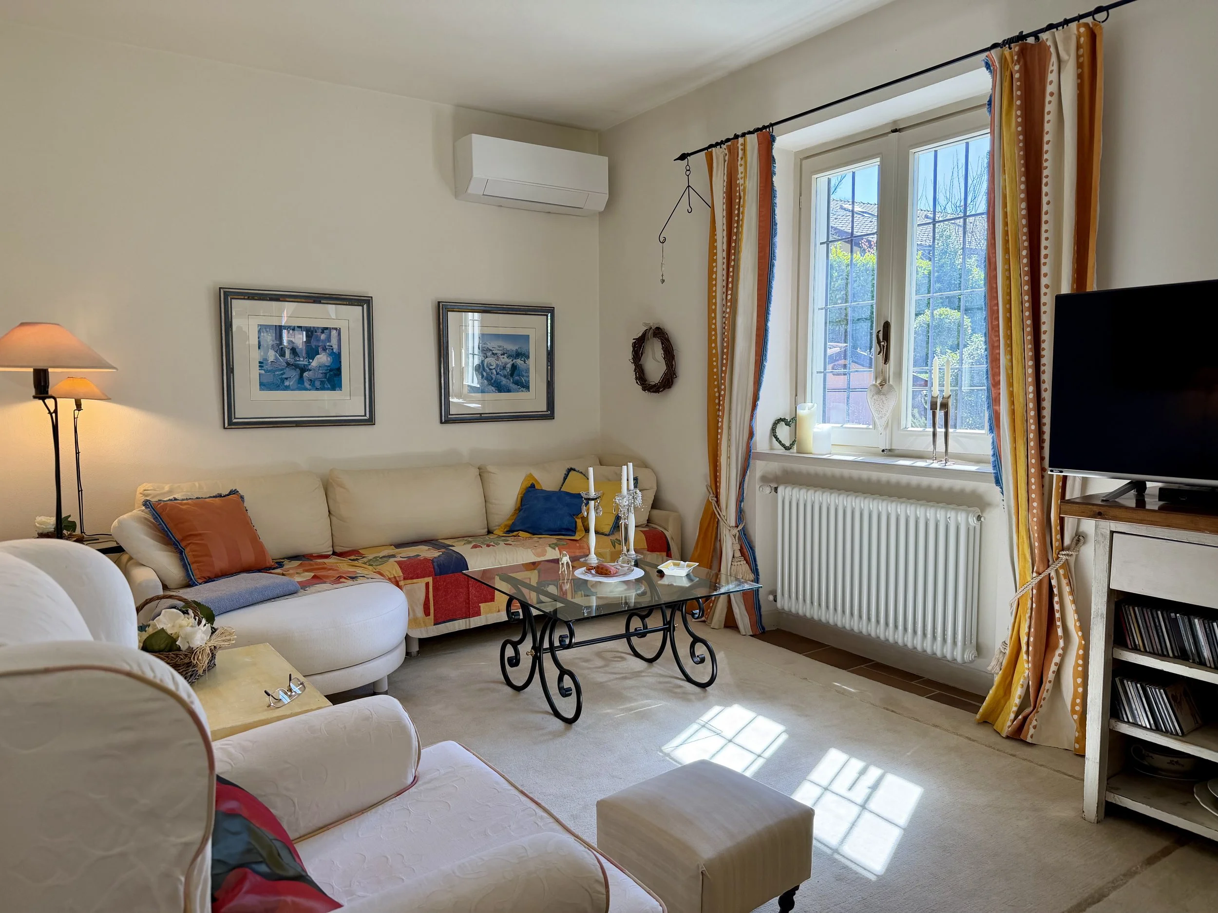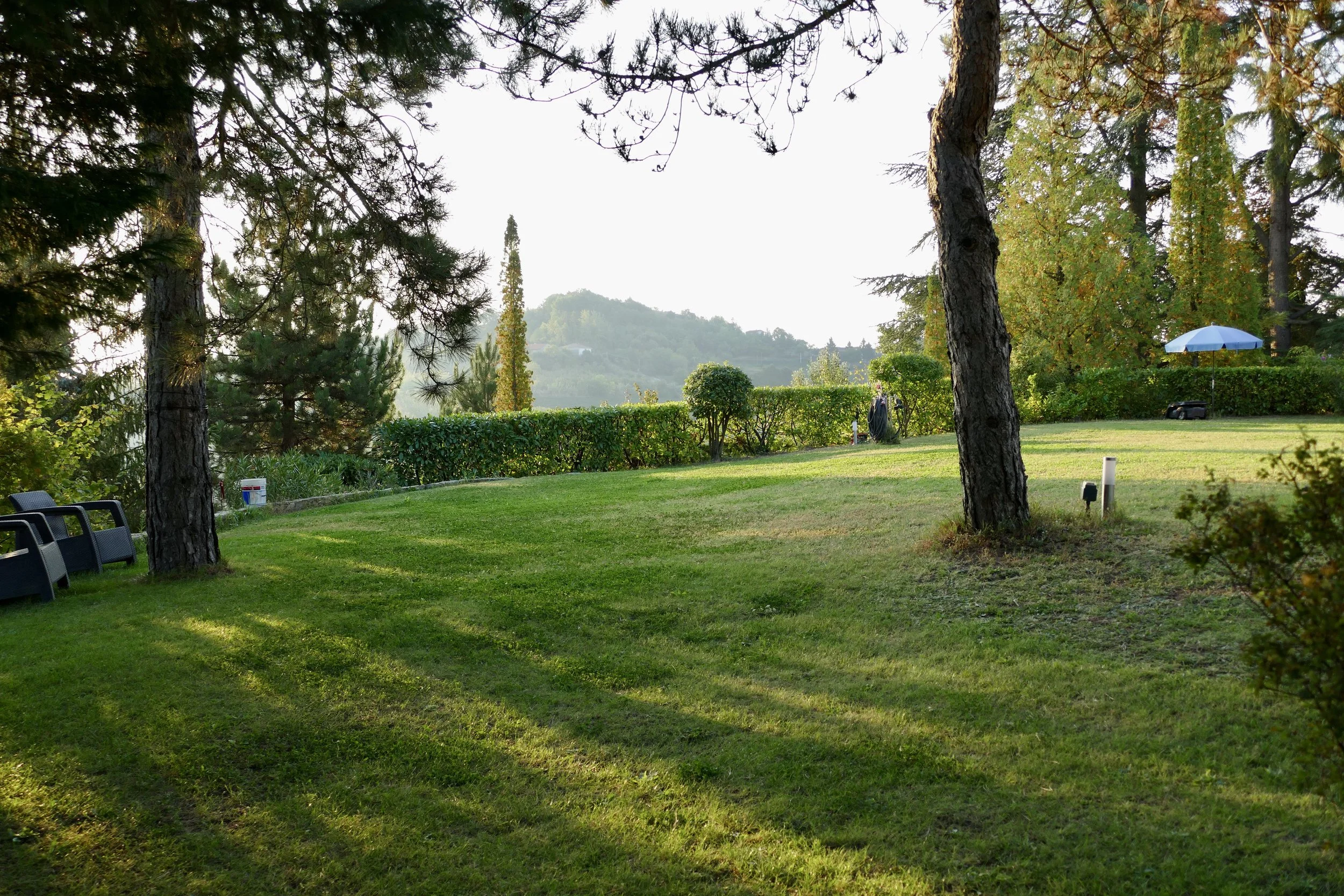 If you are looking to combine stunning views with genuine Italian lifestyle, look no further. This charming house is situated on a hilltop in walking distance to the beautiful village of Montabone with its timeless atmosphere and old stone houses. The village is at 450 m in elevation and from the house you can see the Alps towards the north west and the Ligurian Apennines towards the south east. The property was purchased by the current owner in 2018 and immediately refurbished to its present state. The electrics and plumbing were changed, all external walls insulated, new boiler fitted as well as a solar panel for hot water on the roof. Two new bathrooms were made, new kitchen and air condition units fitted in the ground floor bedroom and living room. On the ground floor is bright open plan kitchen/dining/living room with a wood burning fire place and terrace doors leading out to the back and front garden. This is followed by a double bedroom with ample wardrobe space, a good size bathroom with both a bath tub and walk in shower plus a separate toilet.