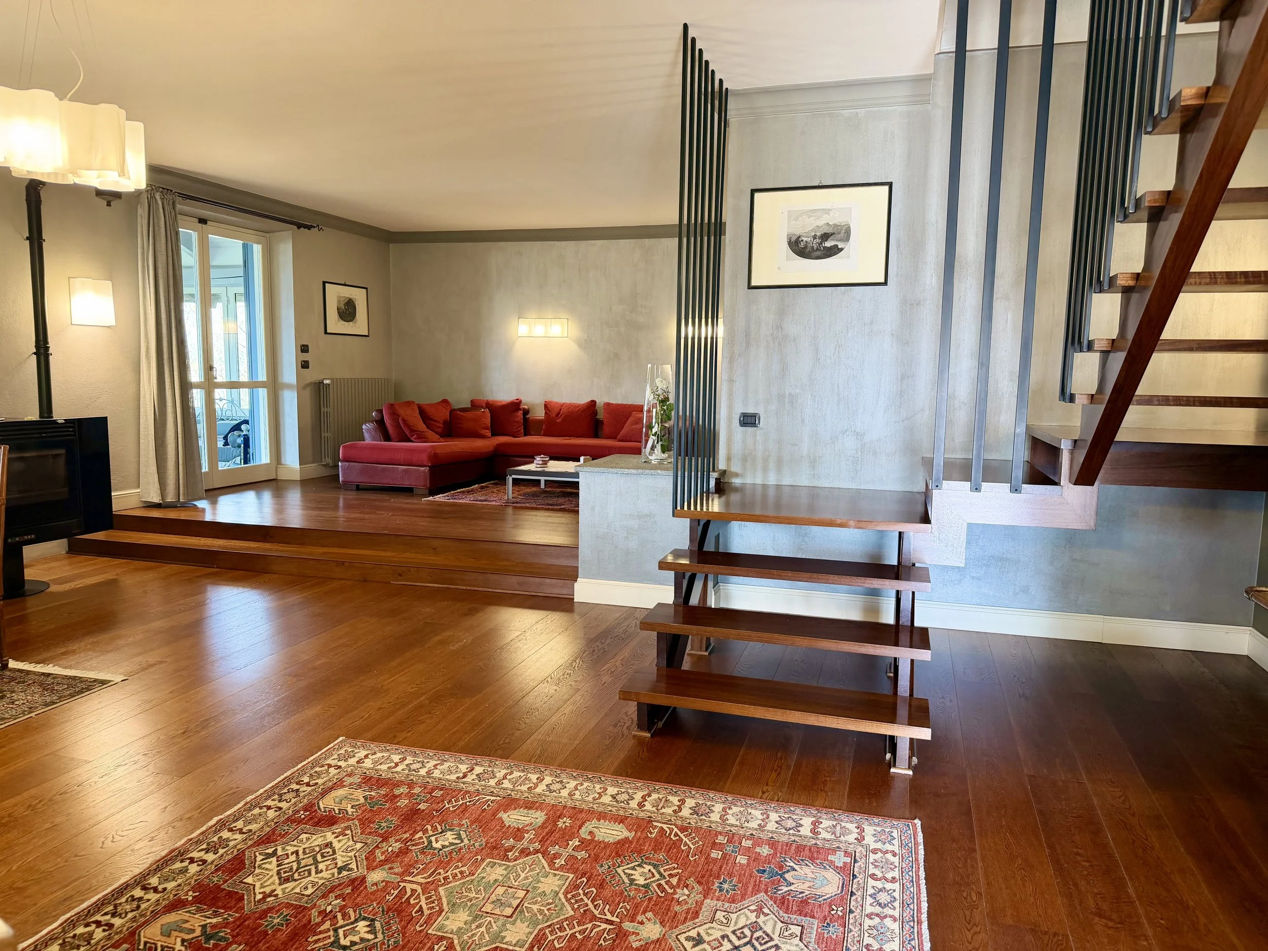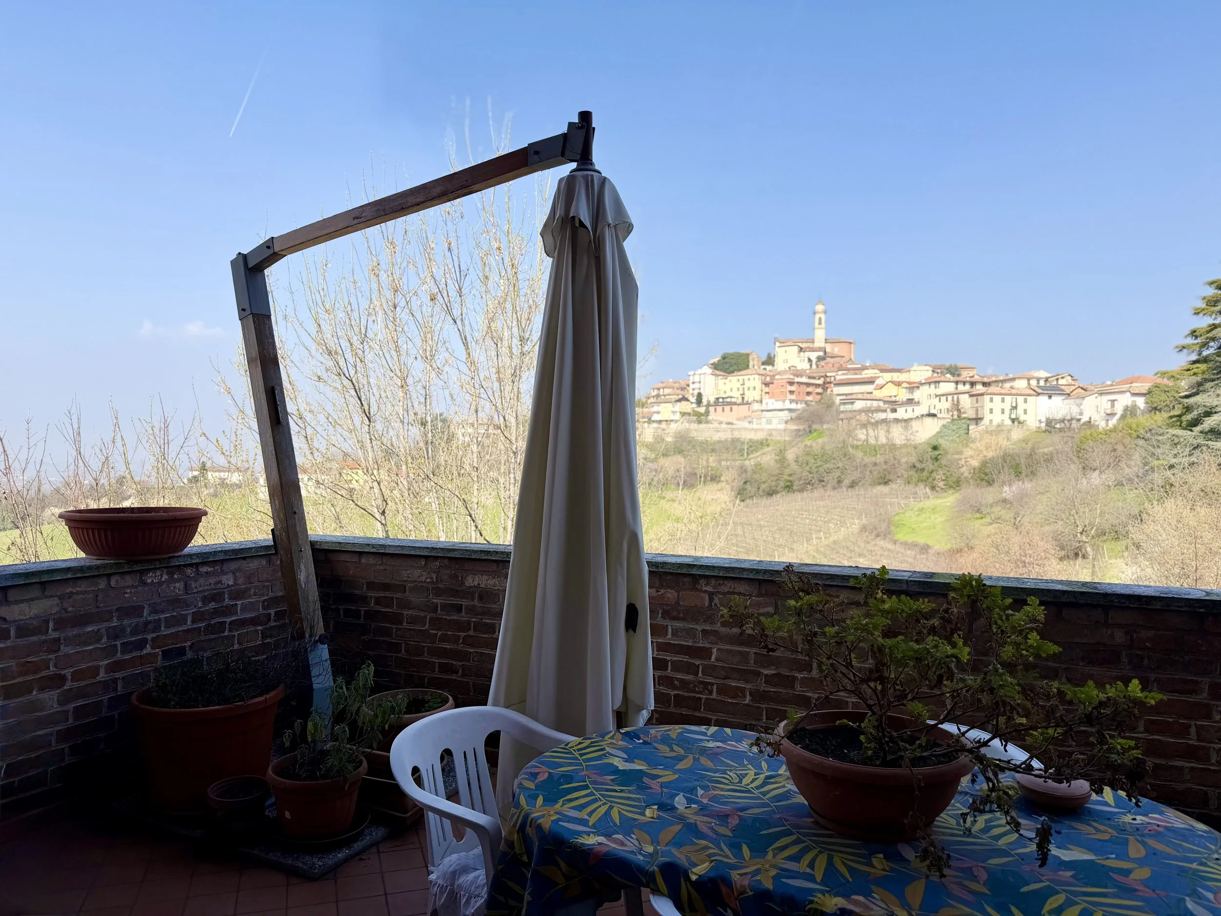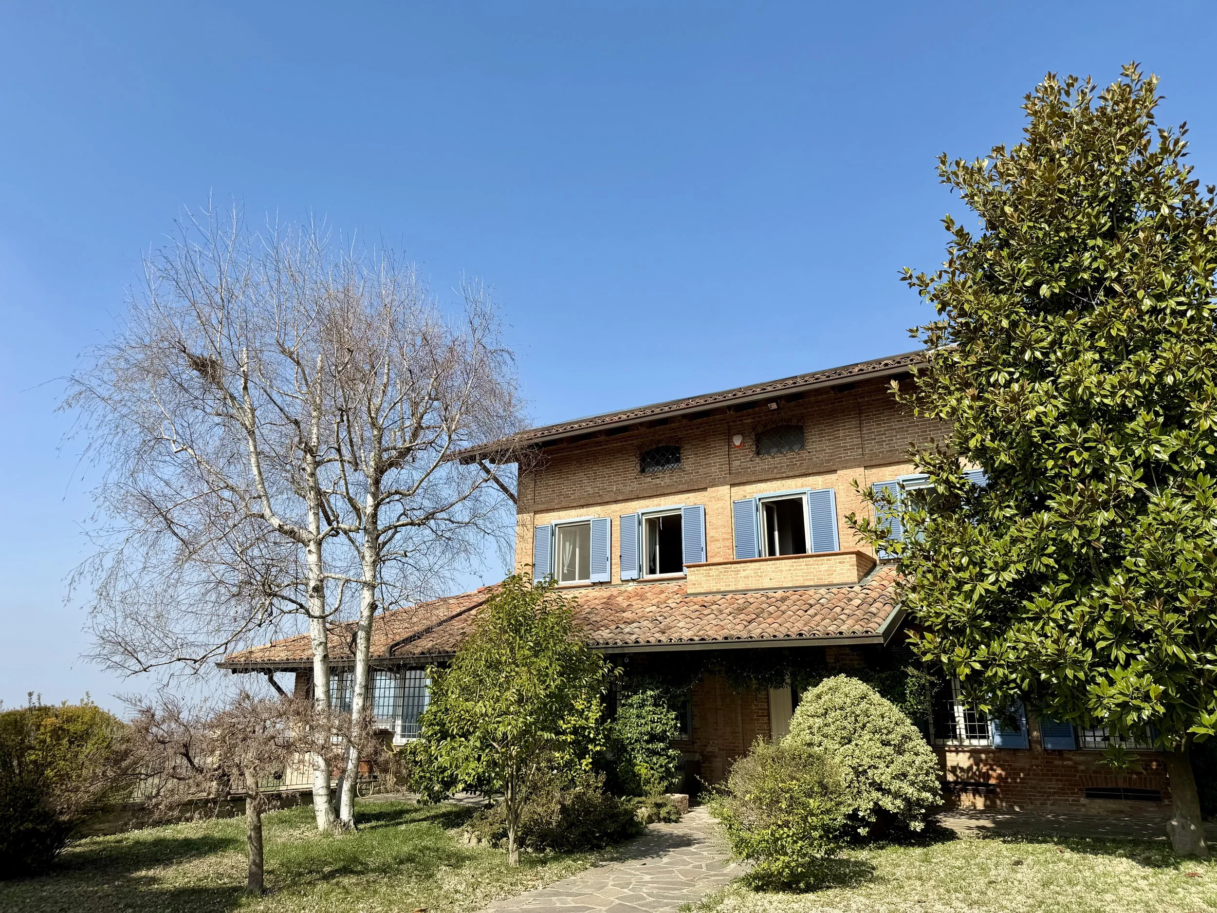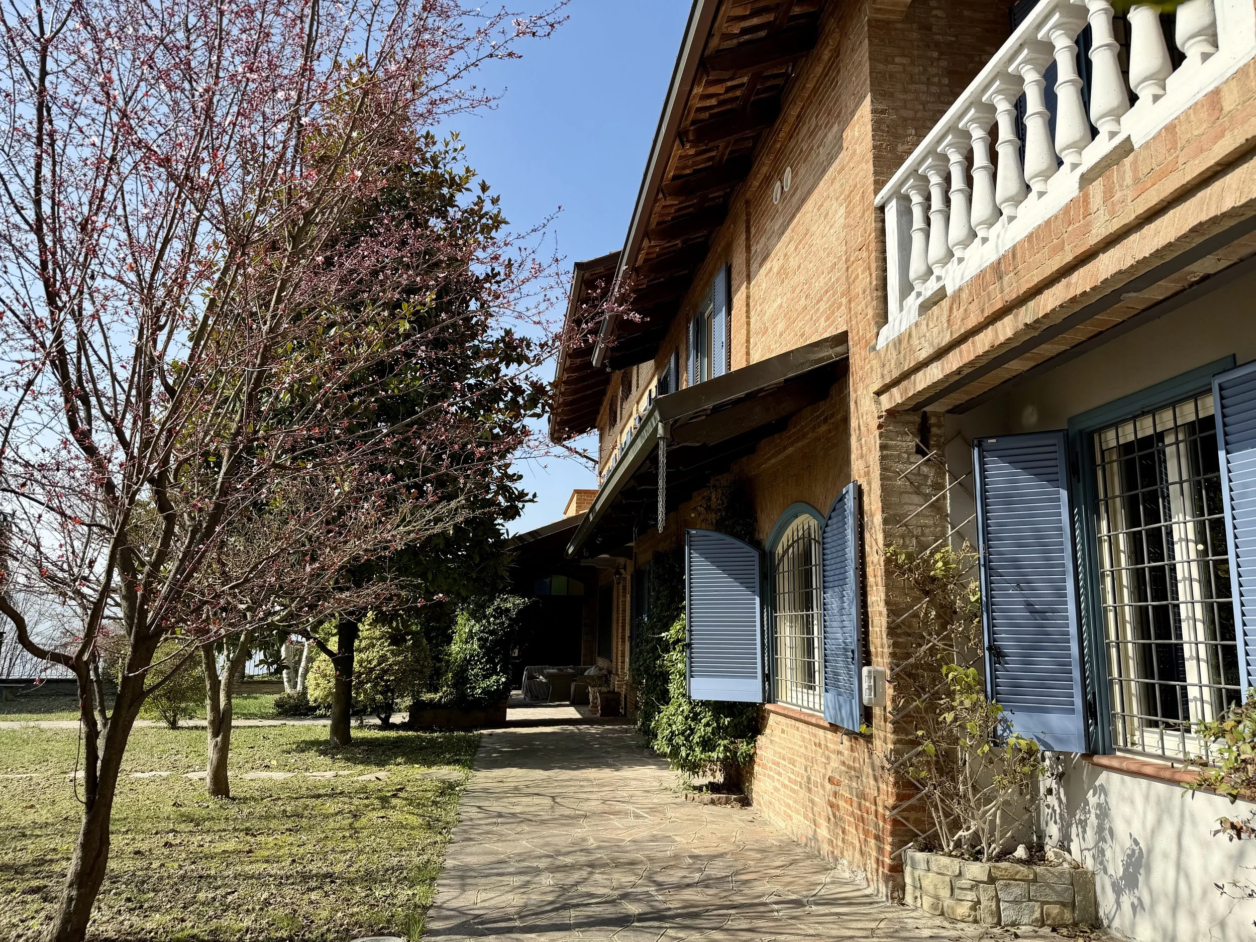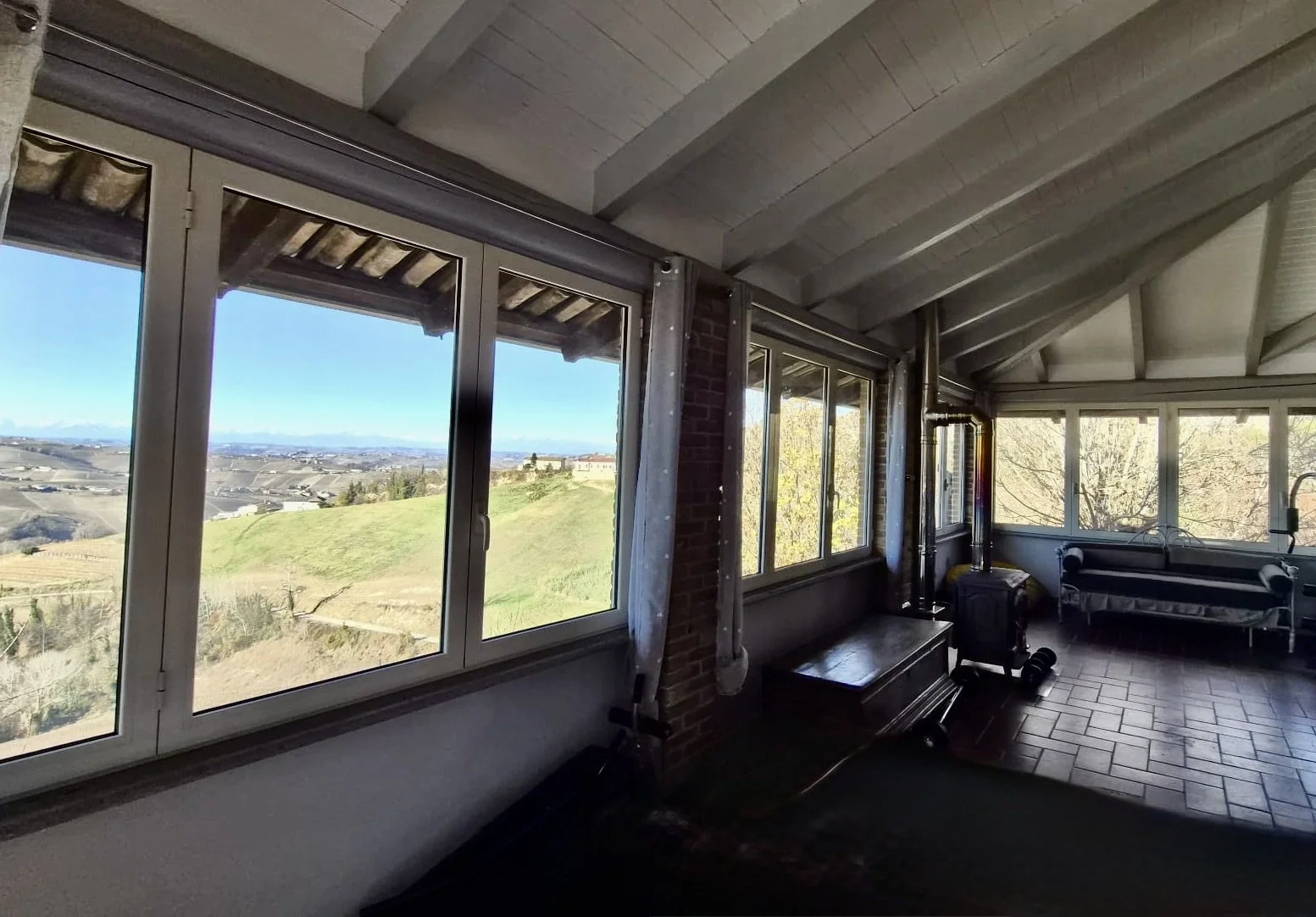 This amazingly situated old farmhouse has over the years been transformed into a modern and comfortable home with electricity producing solar panels (10 kw) installed in 2023, air condition units in 3 of the bedrooms, new doors and windows as well as upgraded bathrooms. A built in, west facing covered terrace offers fantastic views of Monviso and the Alps, and serves a a home gym and/or party room for big dinners and gatherings. A multifunctional space with the most breathtaking backdrop!