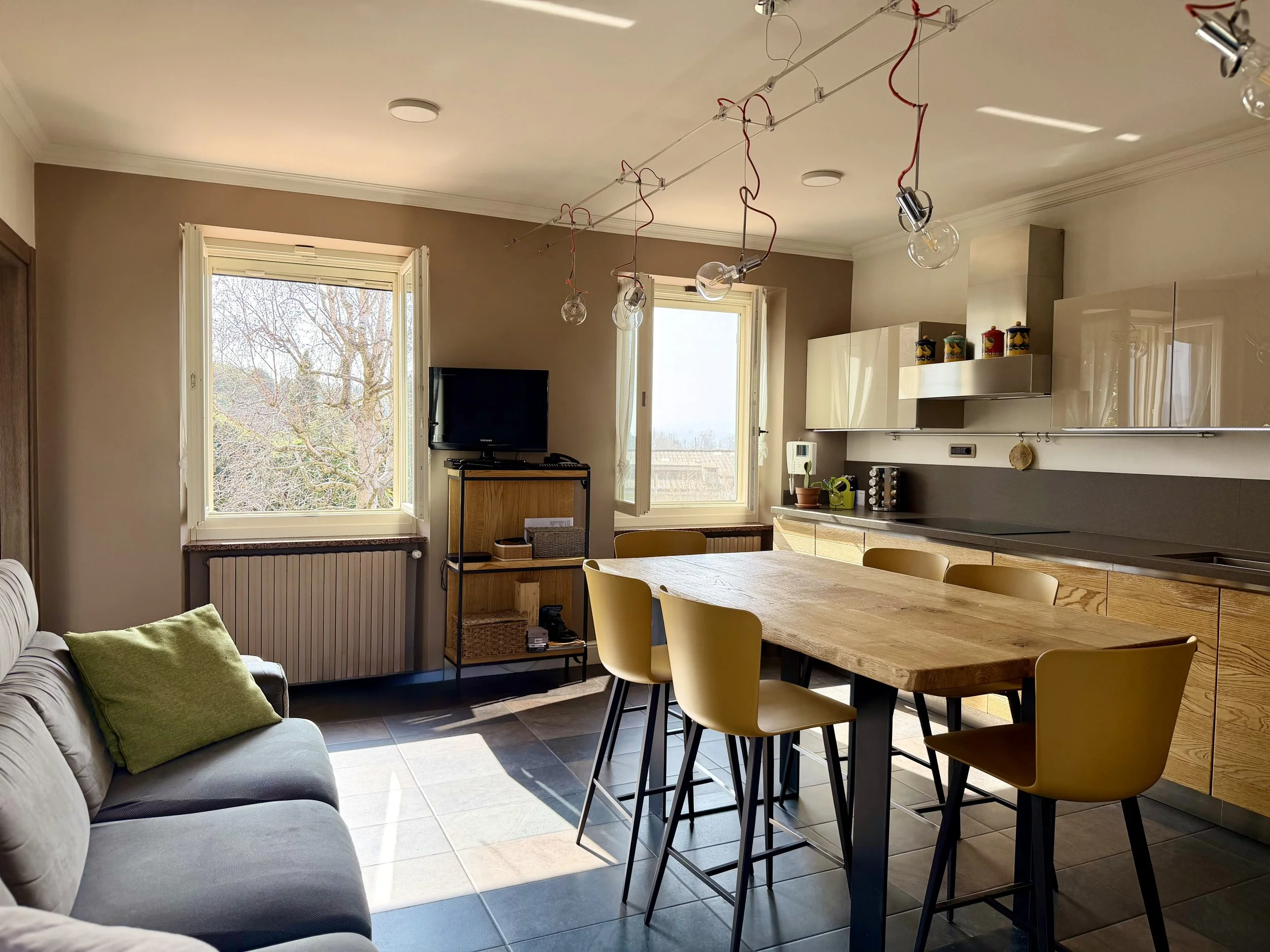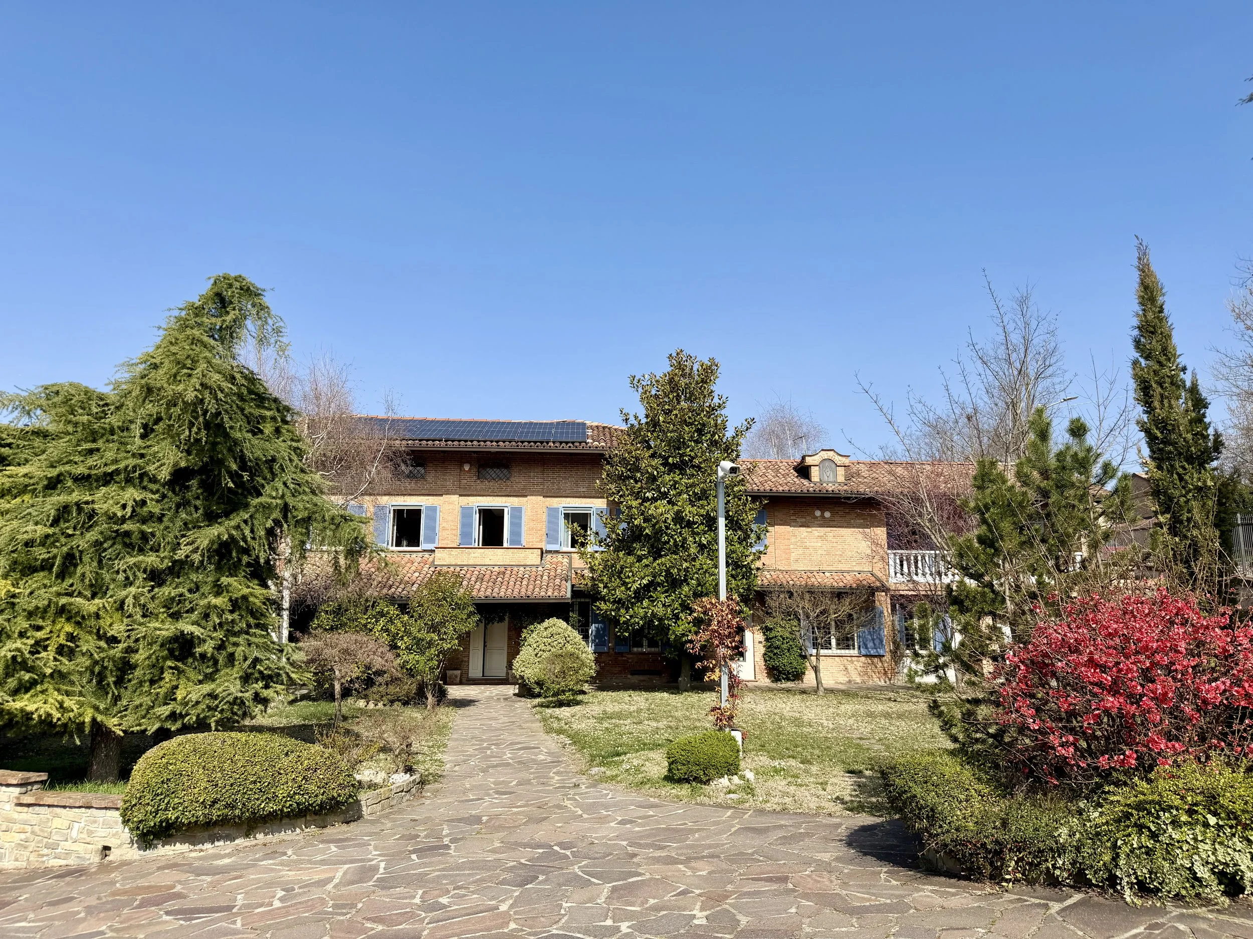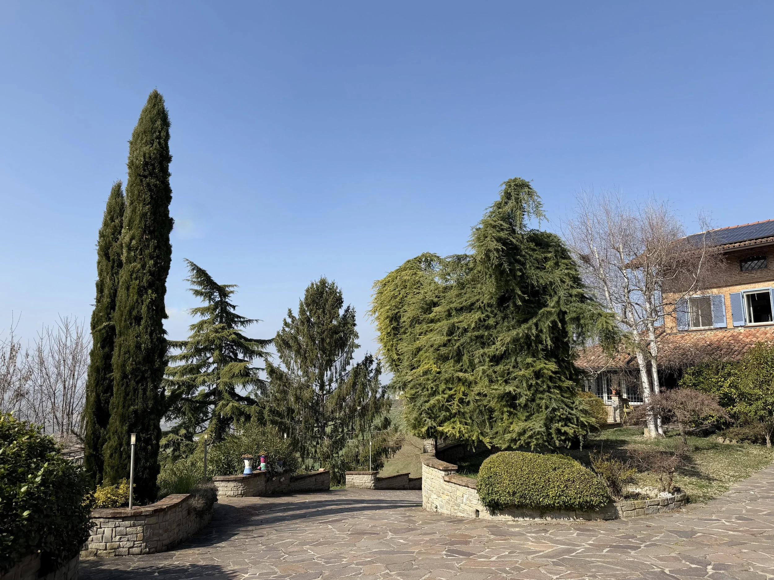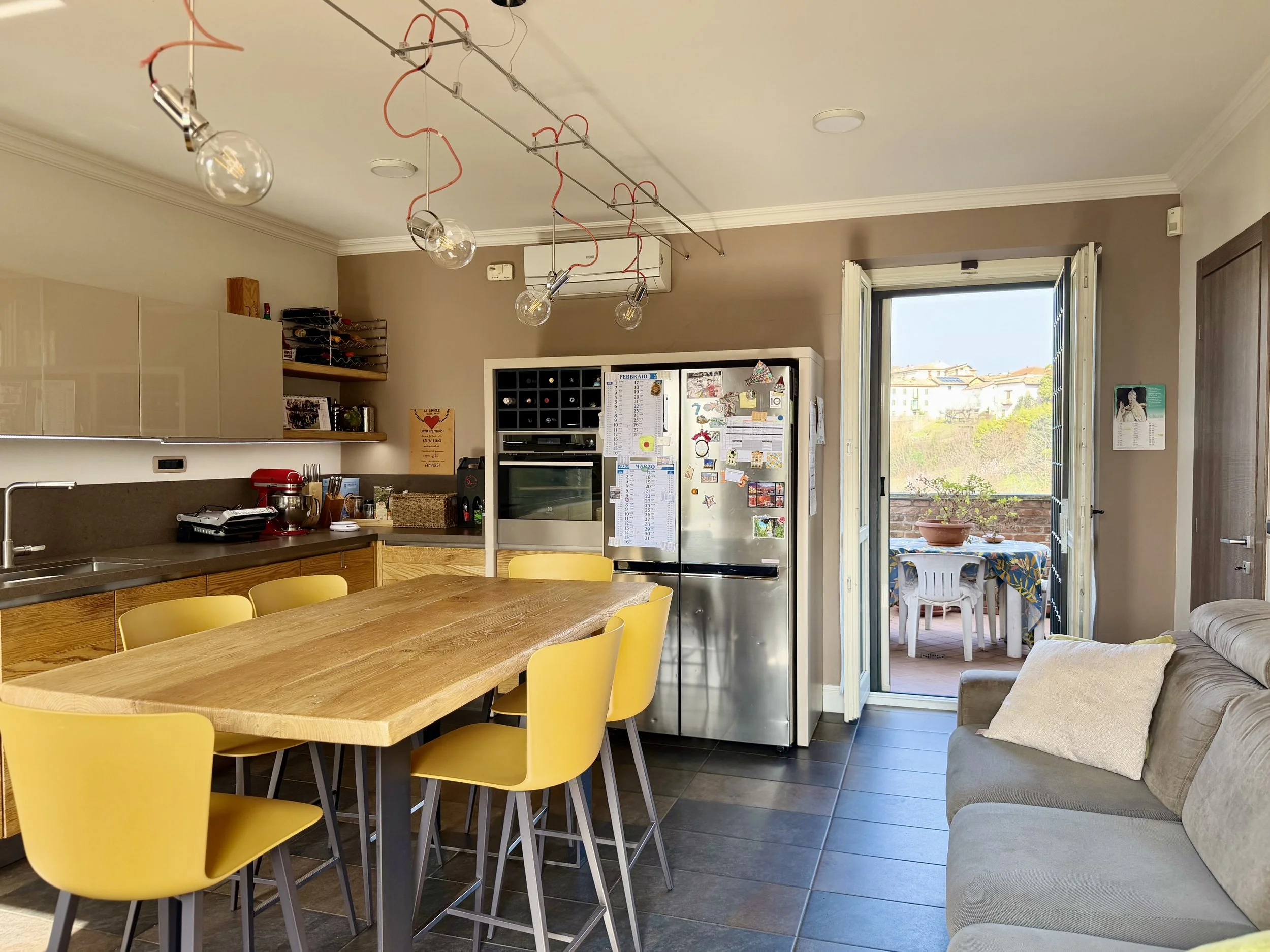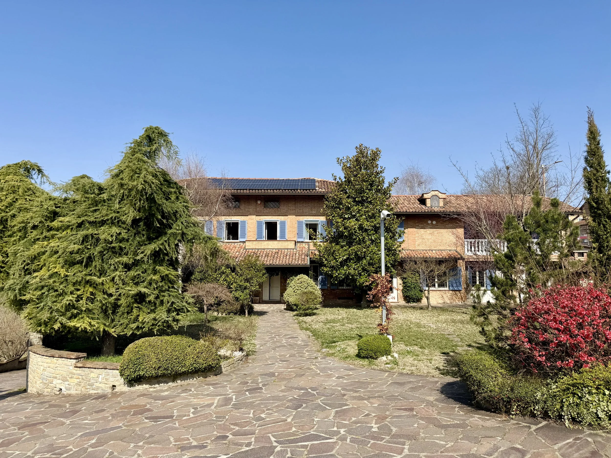 This amazingly situated old farmhouse has over the years been transformed into a modern and comfortable home with electricity producing solar panels (10 kw) installed in 2023, air condition units in 3 of the bedrooms, new doors and windows as well as upgraded bathrooms. A built in, west facing covered terrace offers fantastic views of Monviso and the Alps, and serves a a home gym and/or party room for big dinners and gatherings. A multifunctional space with the most breathtaking backdrop!