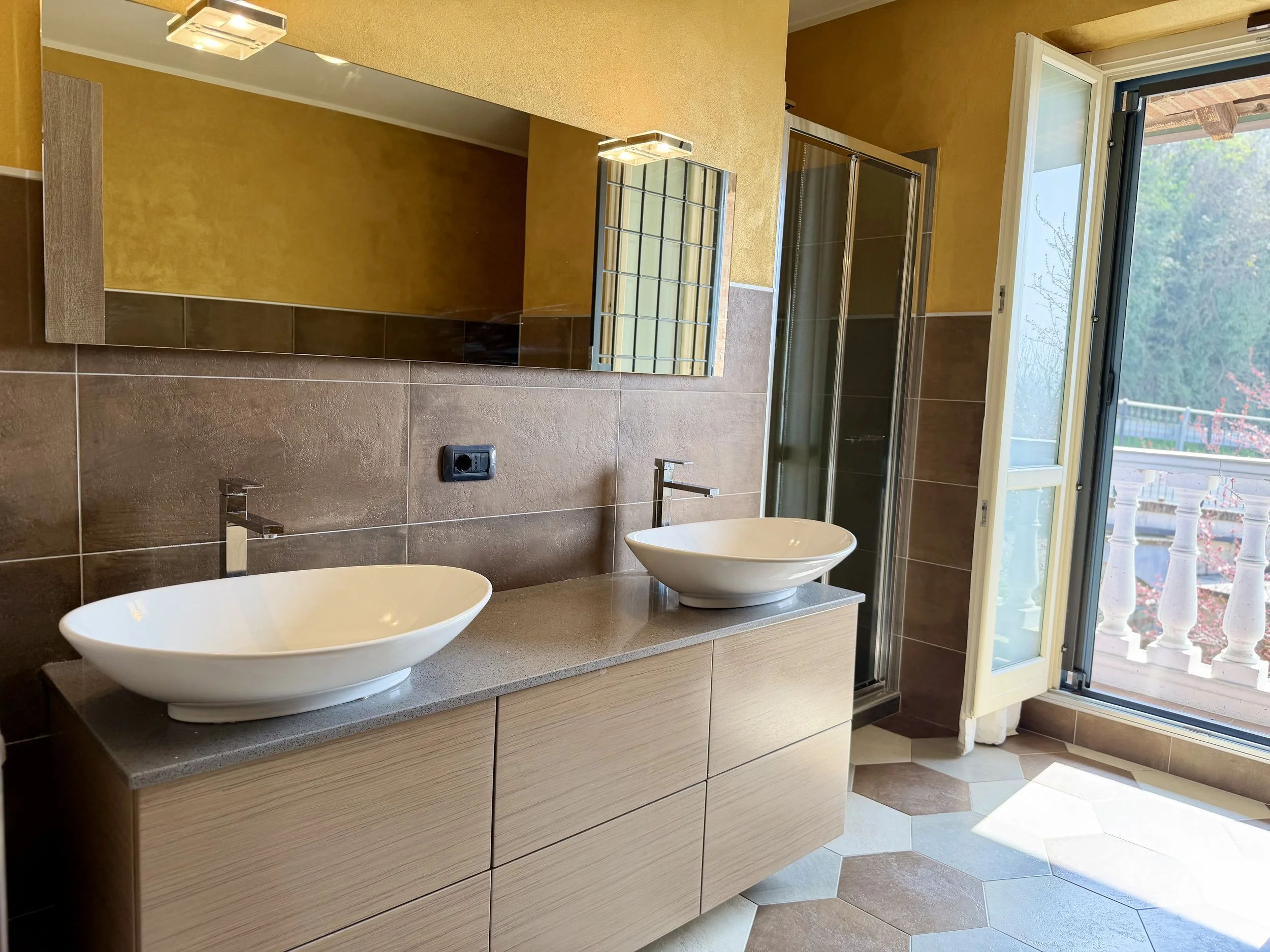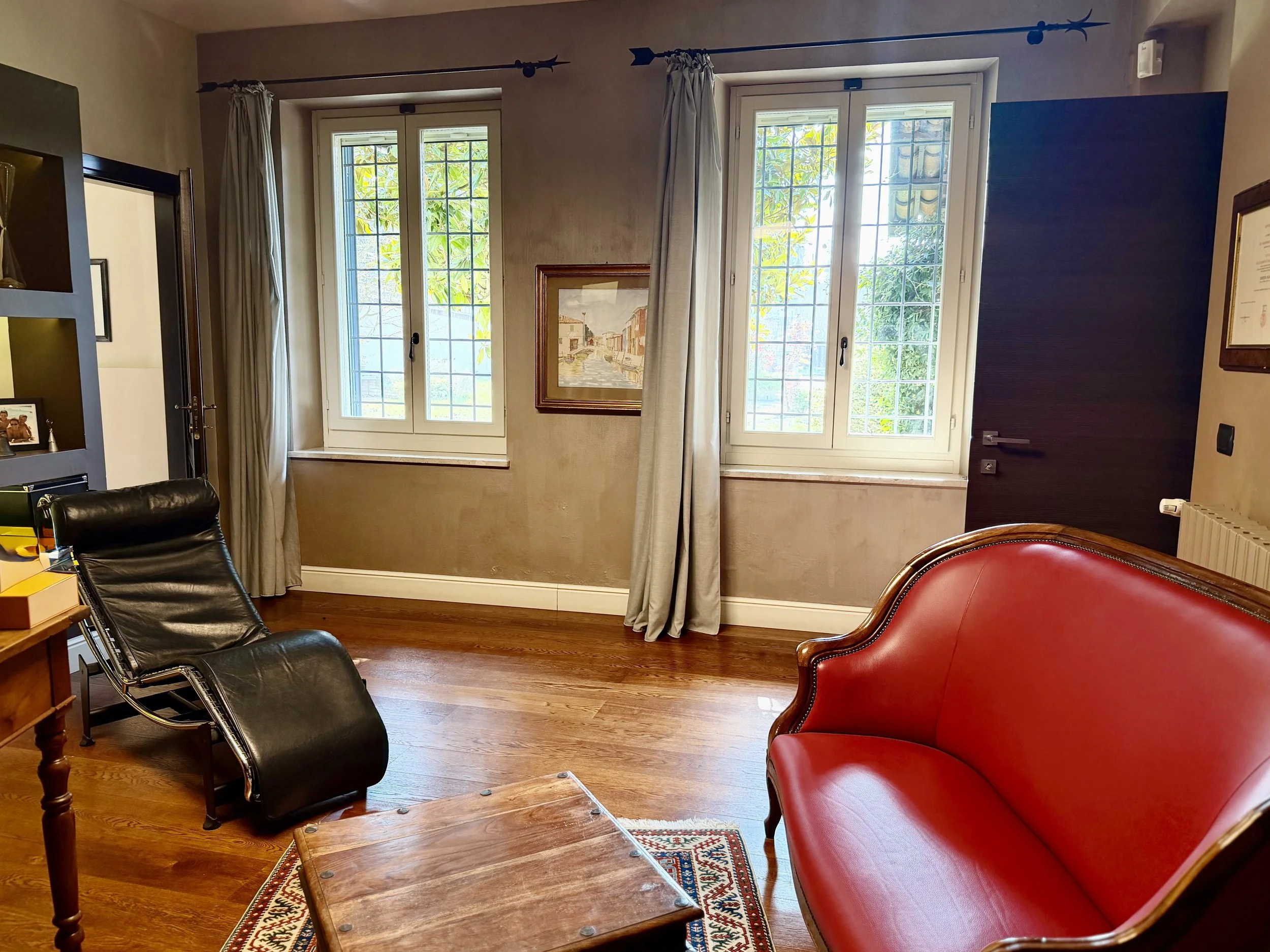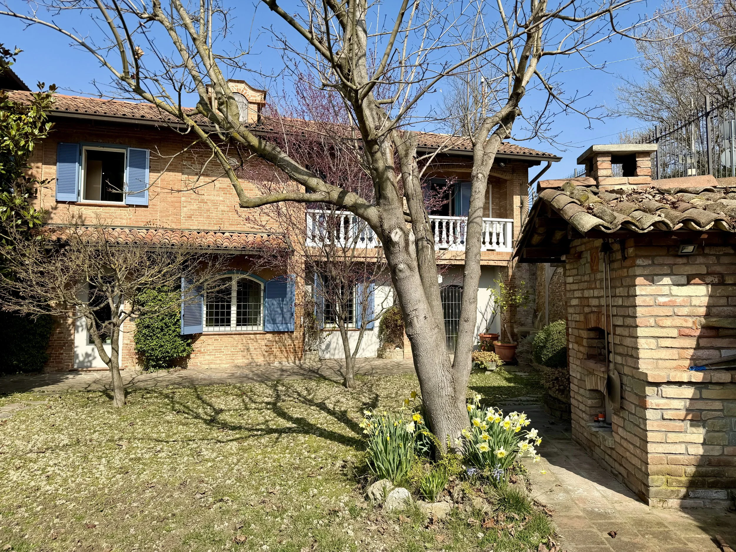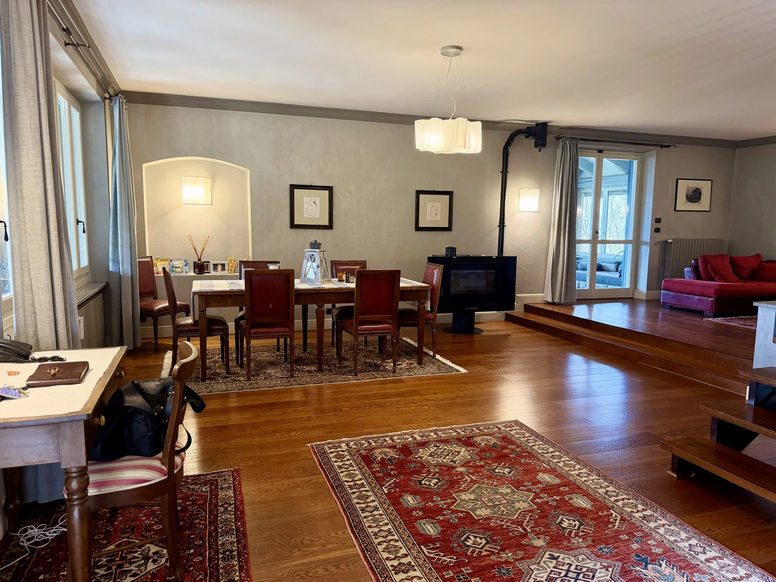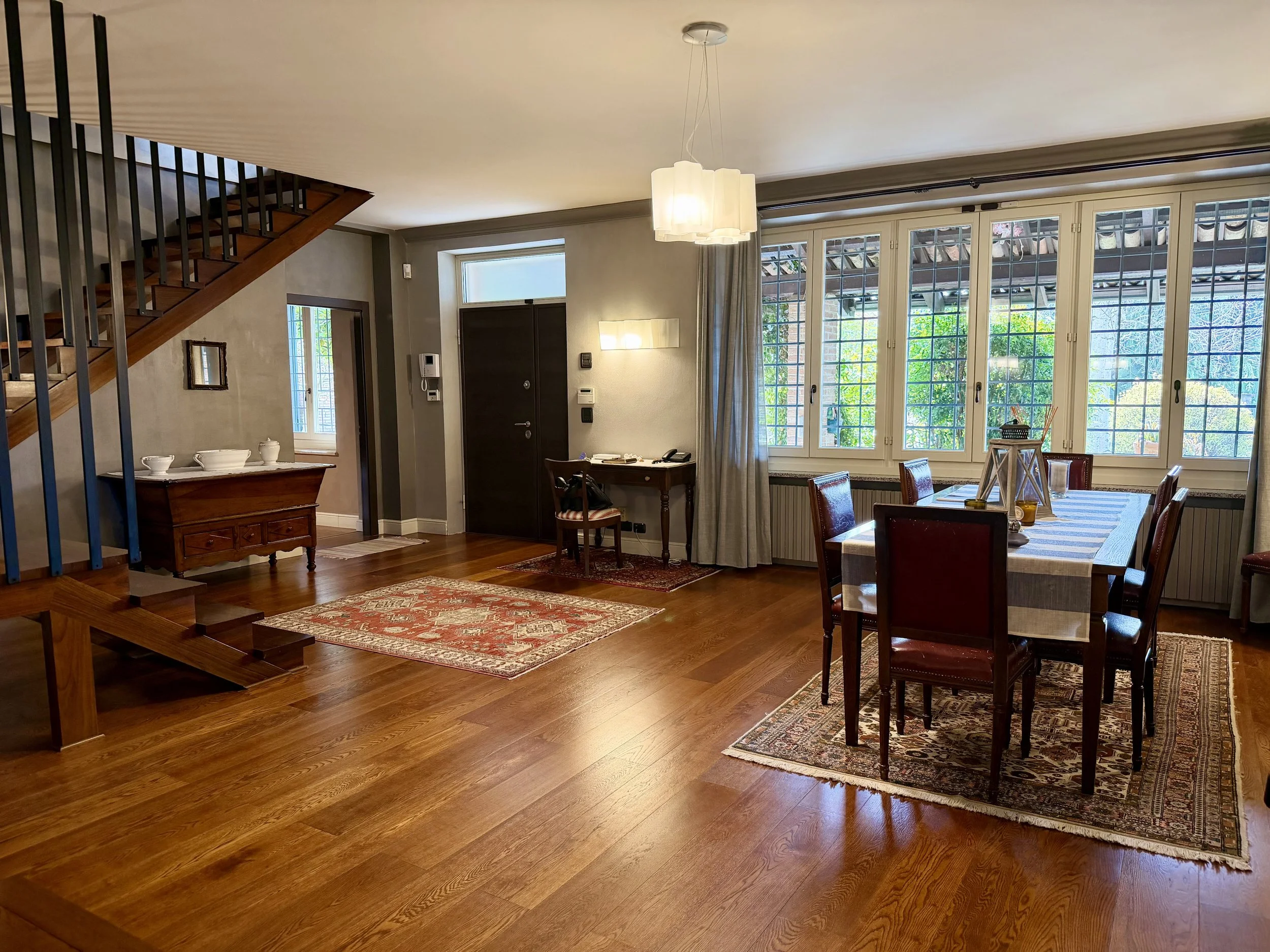 This amazingly situated old farmhouse has over the years been transformed into a modern and comfortable home with electricity producing solar panels (10 kw) installed in 2023, air condition units in 3 of the bedrooms, new doors and windows as well as upgraded bathrooms. A built in, west facing covered terrace offers fantastic views of Monviso and the Alps, and serves a a home gym and/or party room for big dinners and gatherings. A multifunctional space with the most breathtaking backdrop!