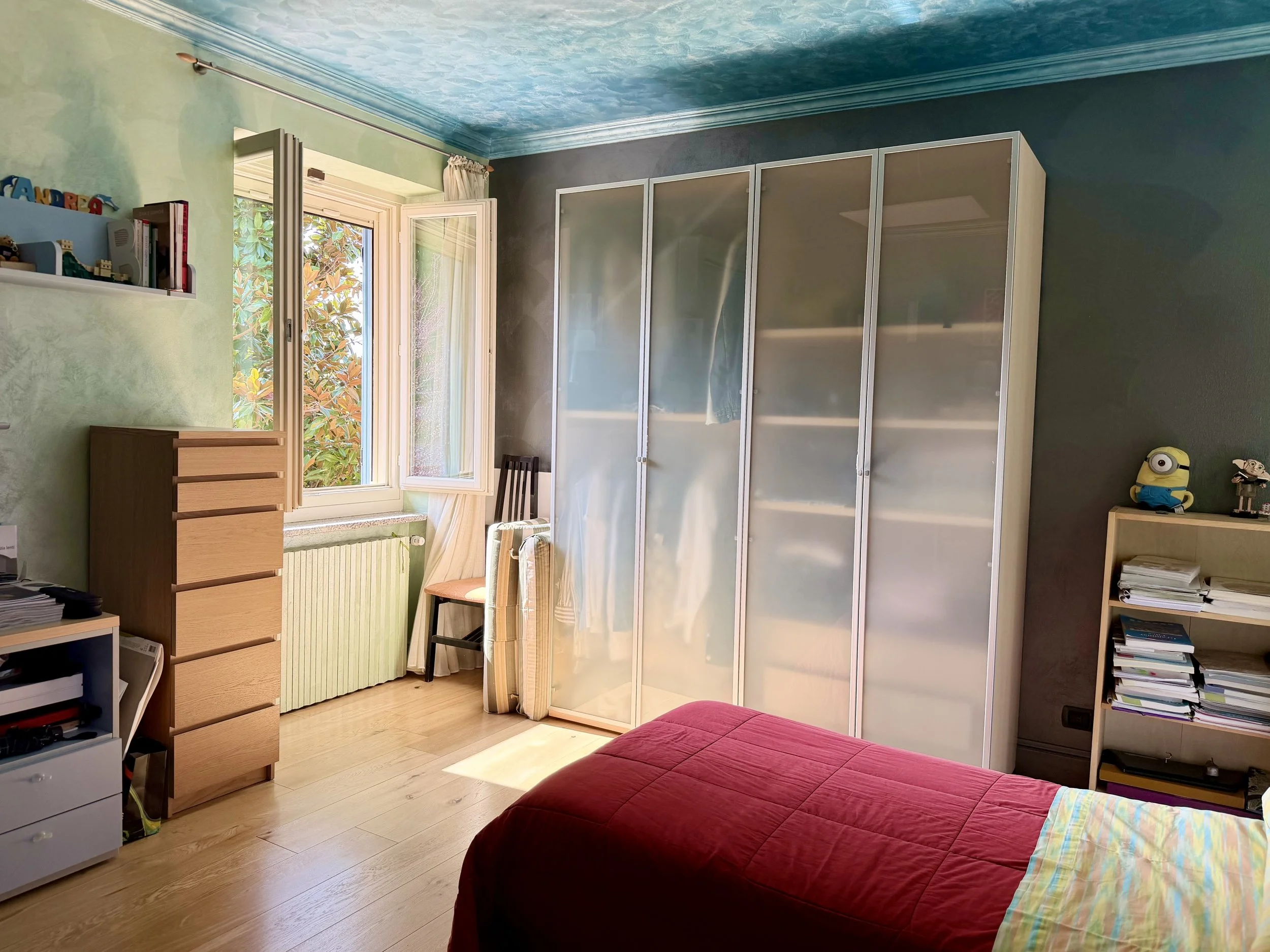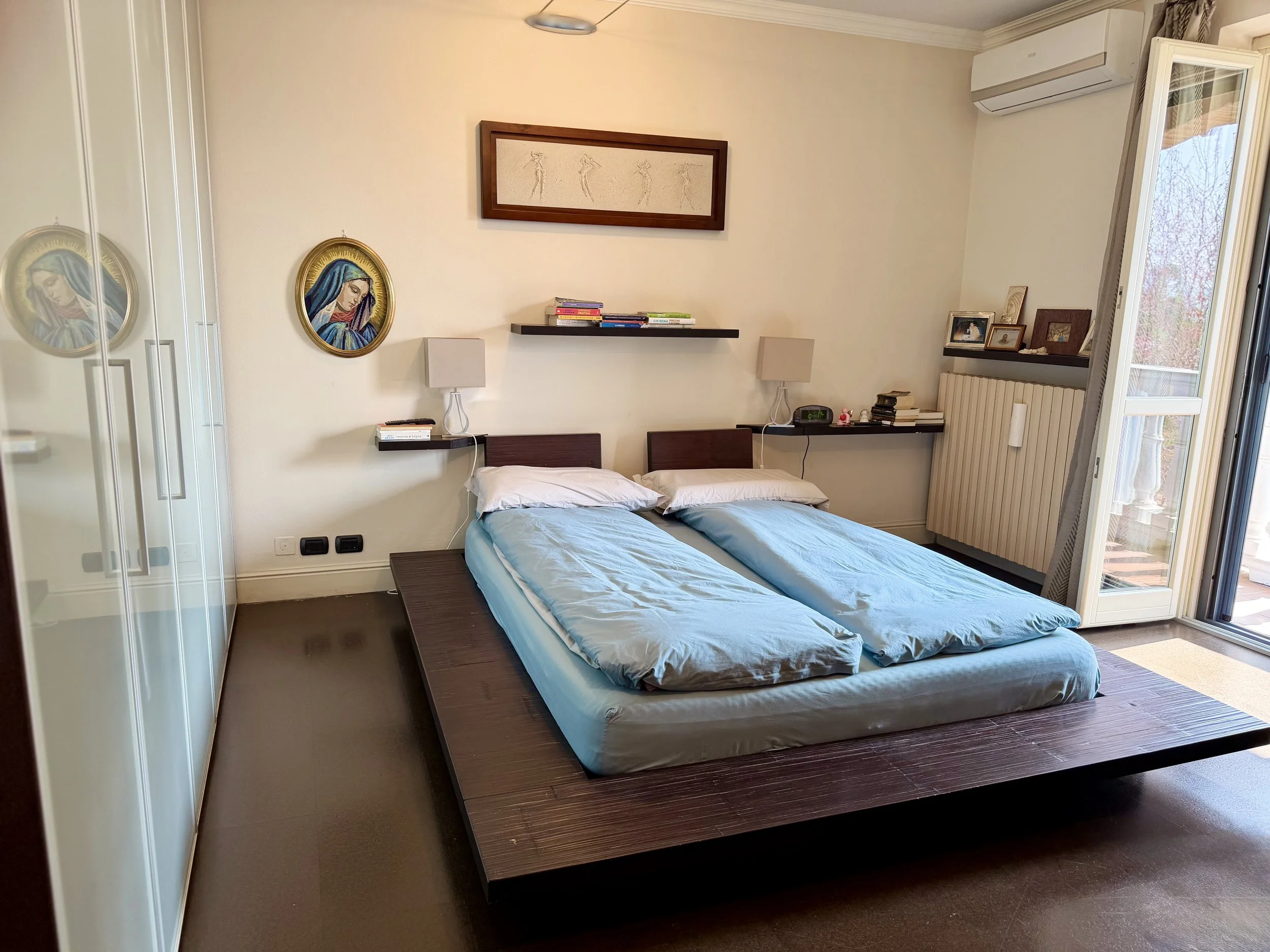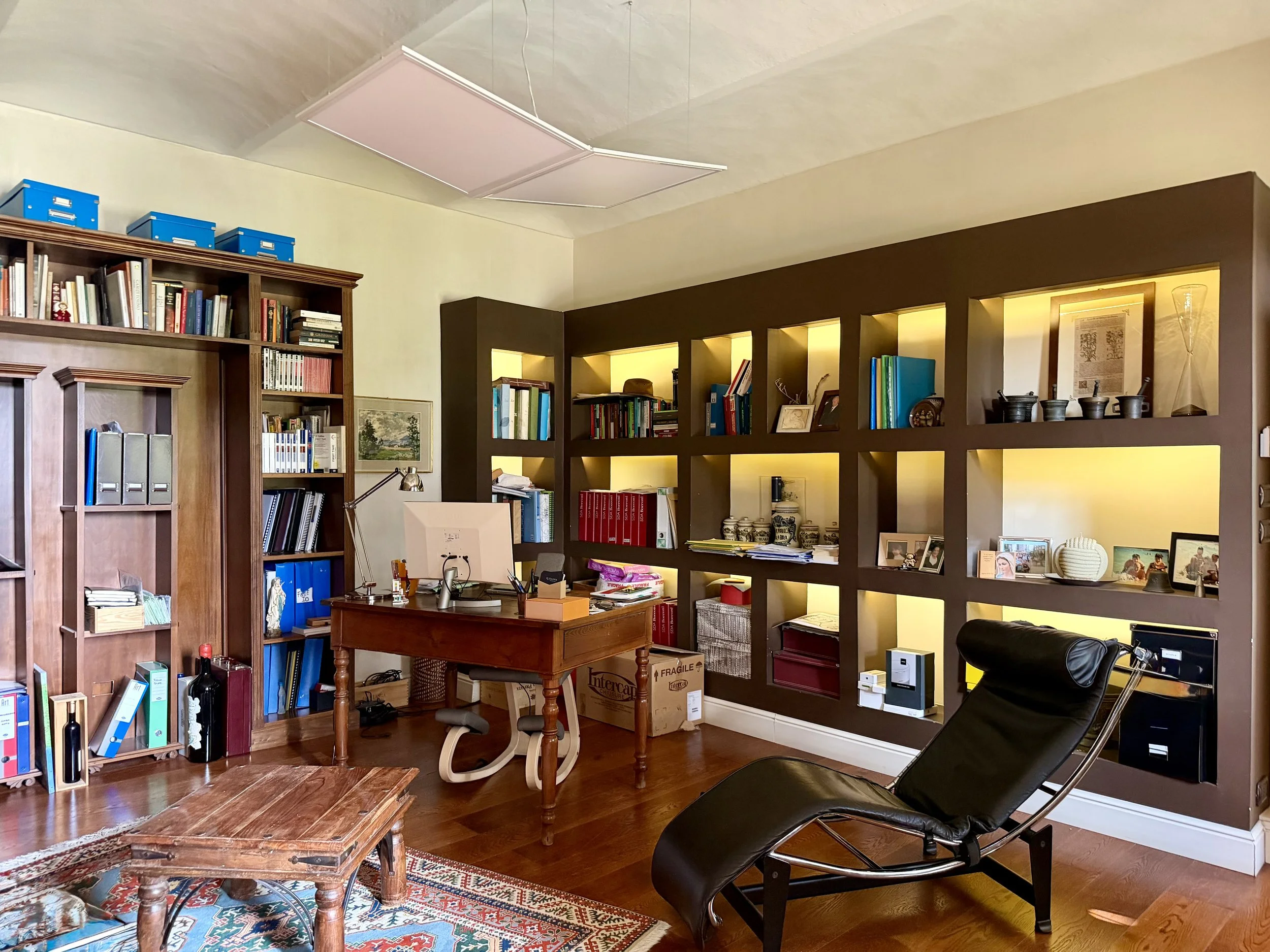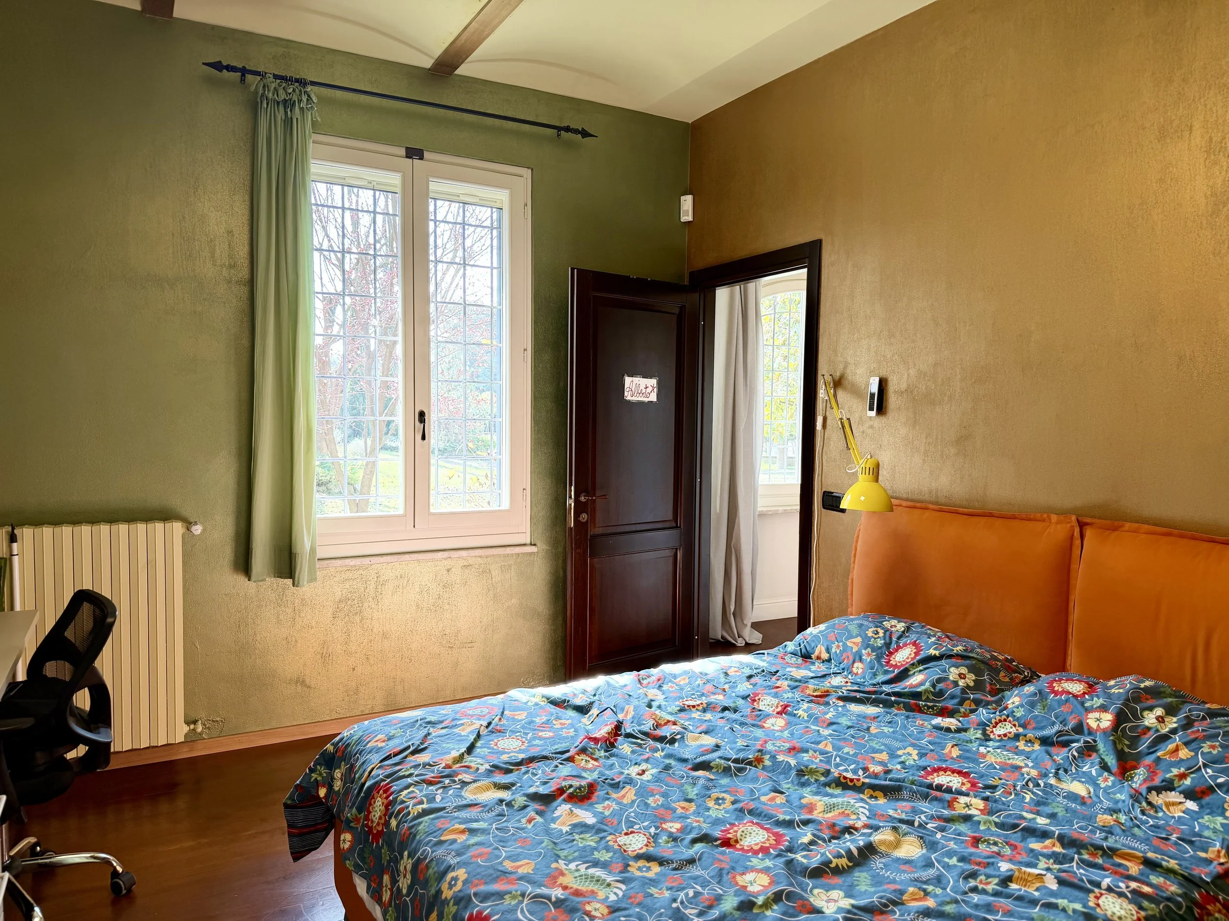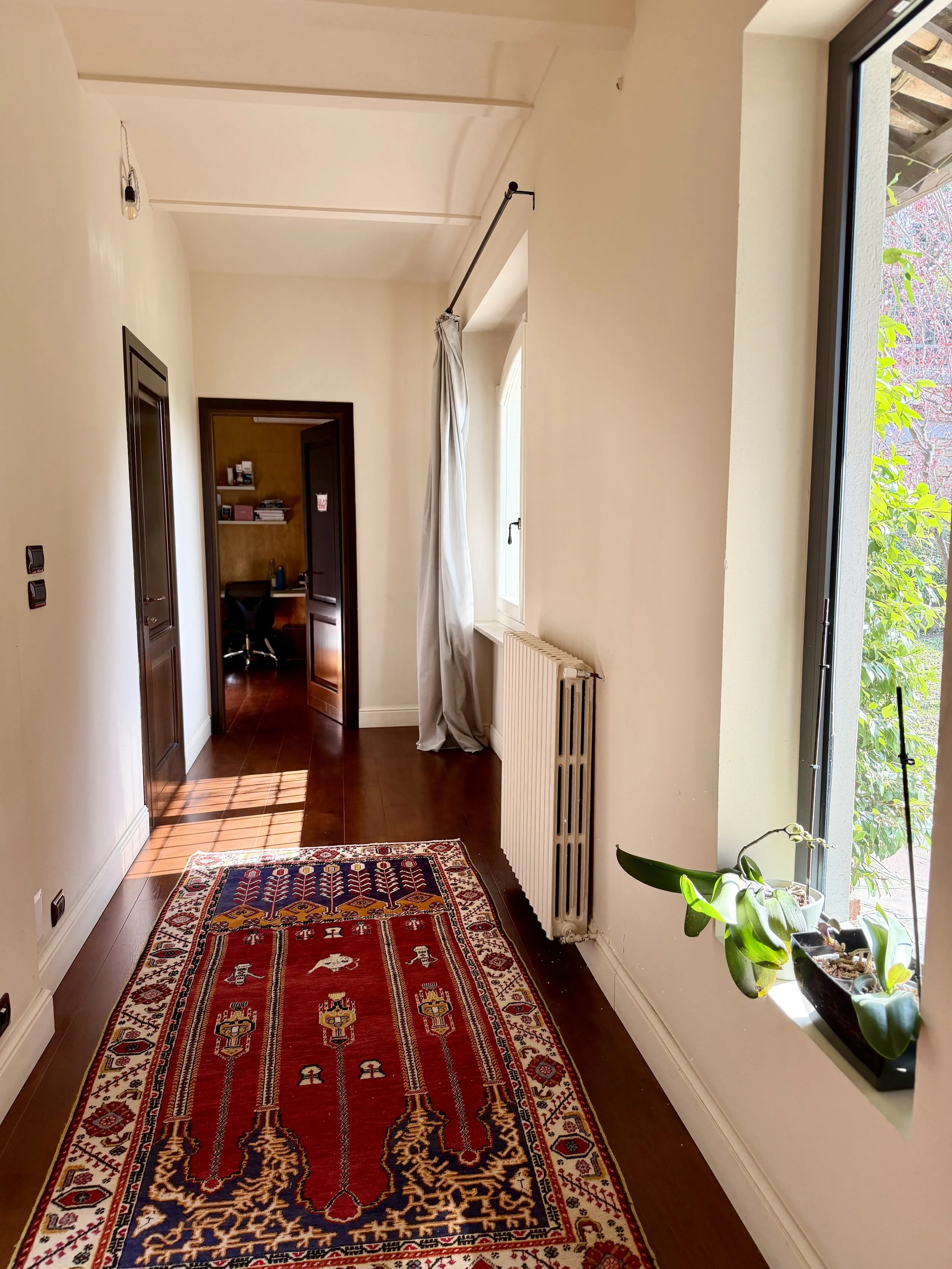 This amazingly situated old farmhouse has over the years been transformed into a modern and comfortable home with electricity producing solar panels (10 kw) installed in 2023, air condition units in 3 of the bedrooms, new doors and windows as well as upgraded bathrooms. A built in, west facing covered terrace offers fantastic views of Monviso and the Alps, and serves a a home gym and/or party room for big dinners and gatherings. A multifunctional space with the most breathtaking backdrop!