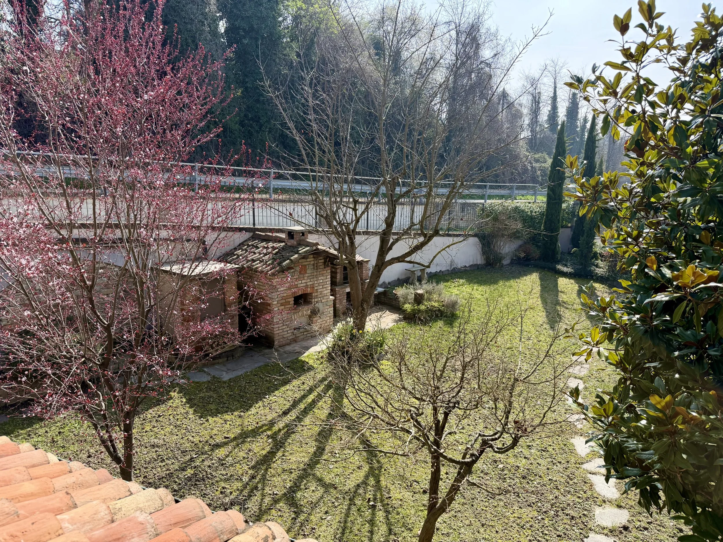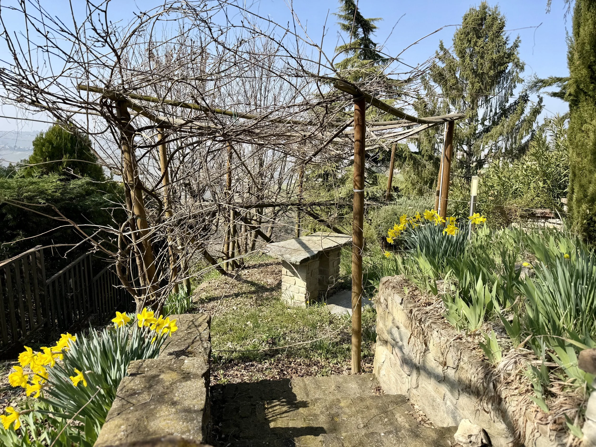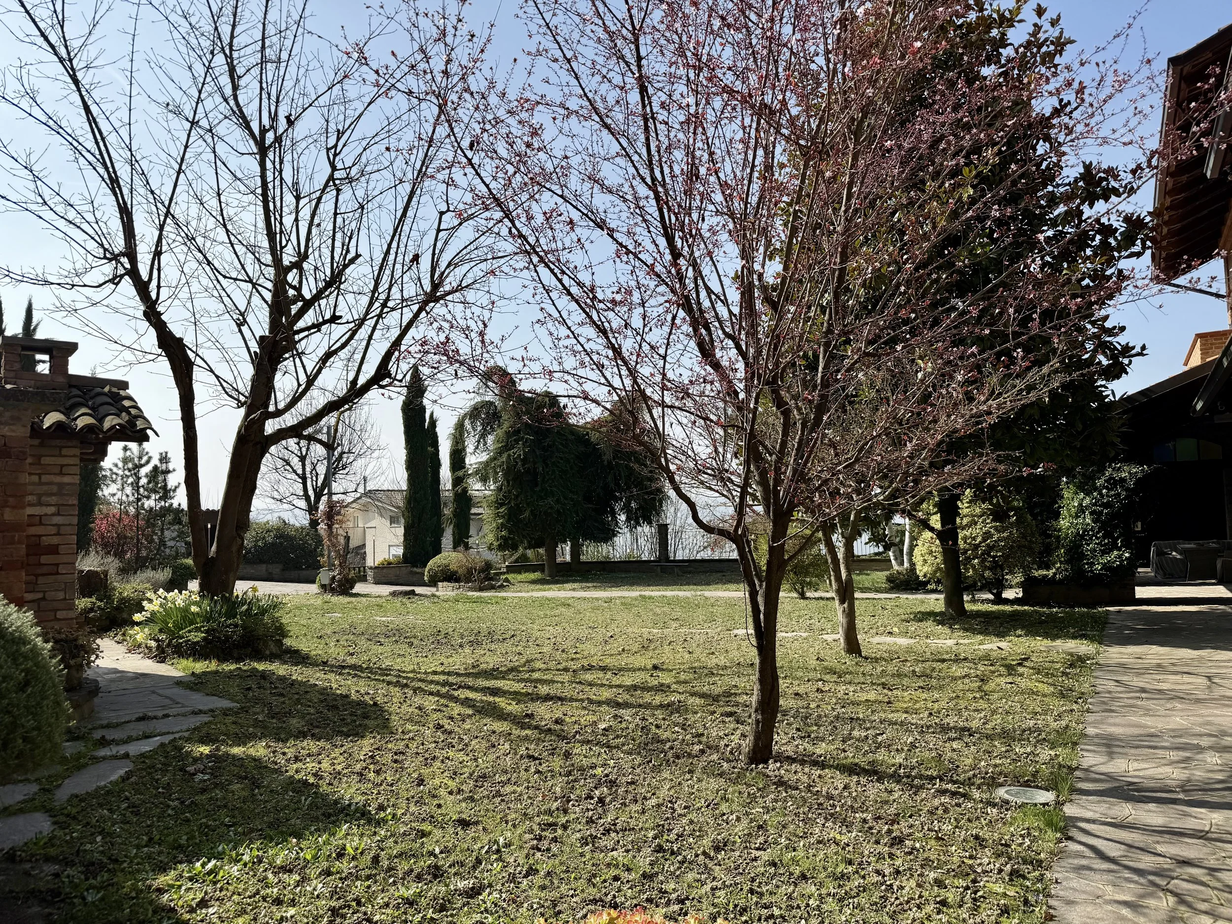 The property has a good size plot of land (ca. 2.240 m2) around the house and it is situated right in the centre of the village. You enter thorugh electric gates to a mature and beautiful front garden featuring several seating areas plus a wood burning pizza/bread oven. The land stretches below and behind the house and is all fenced. Needless to say, here you have plenty of space to build a pool or plant an orchard.