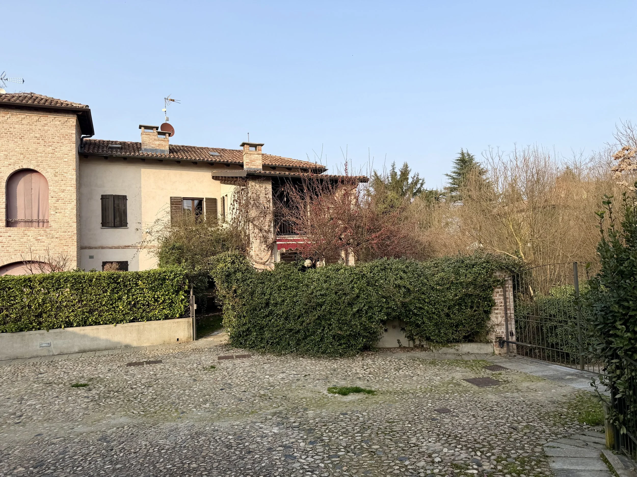 This charming and modern townhouse was totally refurbished in 2013 with new roof, underfloor heating both on ground- and first floor, new doors and windows plus new electrics and plumbing. It has since served as the main residence for the current owners and the house is well taken care of. The house is semi-detached and is situated in the historic part of the village, il Borgo Villa, on top of the hill. It is set within a gated area of nice houses and comes with a double carport across the communal stone covered courtyard. A wooden gate and a high hedge provide privacy for the private garden in front of the house. You enter into an open space living room with patio doors providing lots of light. The kitchen is smart, linear and tailor made and a breakfast bar divides the kitchen from the rest of the dining/living room. Behind the kitchen is a bathroom with shower cubicle and views to the park behind the house. A wood and steel staircase leads up to the two bedrooms, the studio and bathroom on the first floor. The master bedroom has direct access to the balcony overlooking the garden. The yellow cube in the studio is hiding the staircase up to the attic storage room.