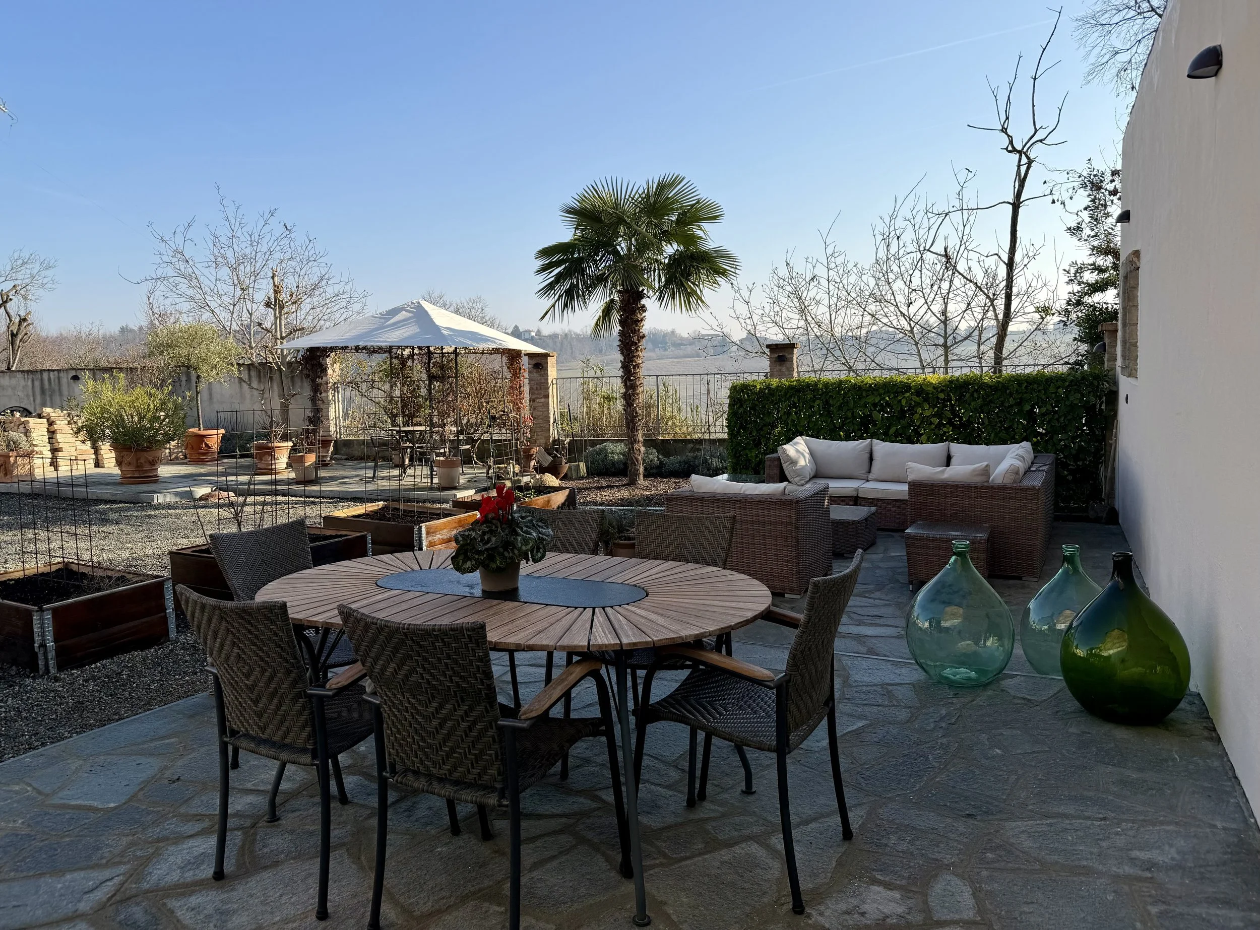 This beautifully restored old farmhouse is located in a hilltop location within short distance to the vibrant village of Agliano Terme with all its services, bars, shops and restaurants.