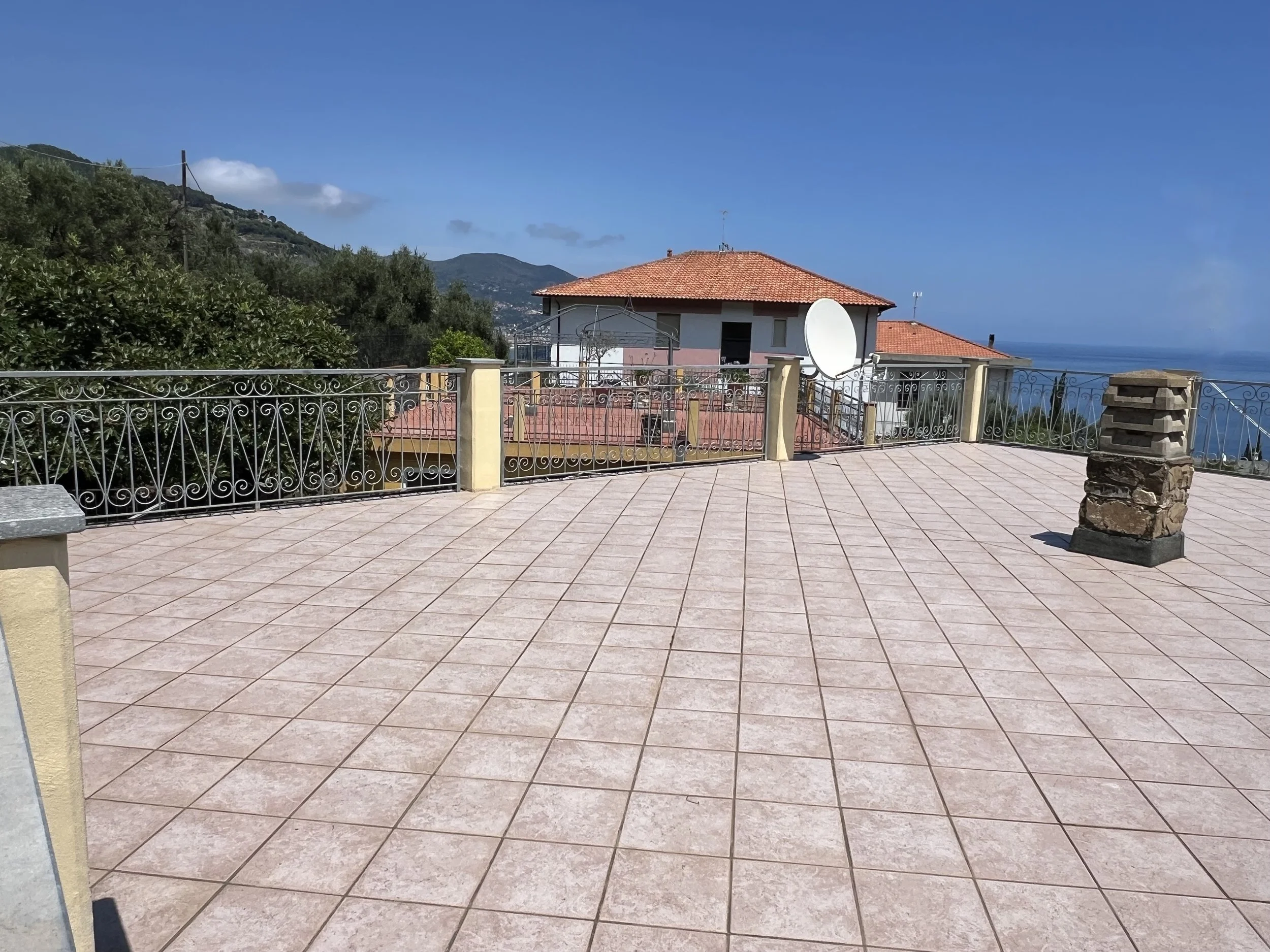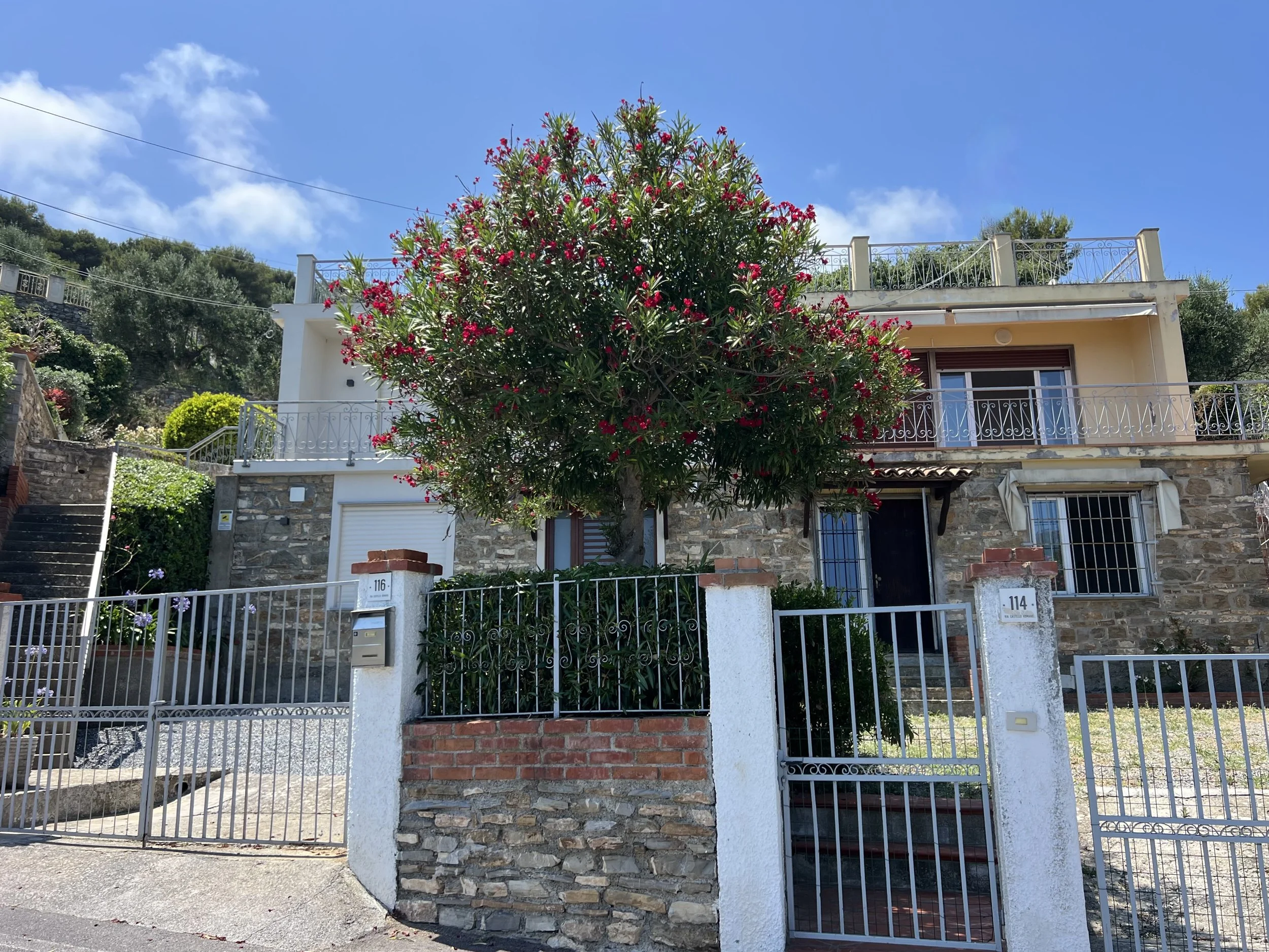 This semi-detached villa is located in the hillside overlooking the beach and historic centre of the much sought after village of Laigueglia, next to Alassio on the Ligurian coast. The house has several terraces and a garden with parking space for two cars. Since private car parking is like gold dust in Liguria, this is considered a big plus. On the ground floor you enter into a spacious hallway with a window facing towards the ocean followed by a double bedroom, a shower bathroom plus a technical room. On the first floor you find; a good size double bedroom with a window towards the kitchen terrace, a bathroom towards the back, a bright living room with a wood burning fireplace and panoramic windows overlooking the sea and veranda doors leading to the terrace right outside. Further on this floor is a galley style kitchen with exit directly to a lovely kitchen terrace where you can enjoy al fresco meals with the mediterranean in the background. There is a long terraced back garden behind the house and the kitchen terrace where you can plant olive trees, herbs and flowers. From the back garden you can enter what is the “icing on the cake” - the big panoramic roof terrace. From here you enjoy the most magnificent views of the coastline and the village below. The house was built in 1970 and might benefit from an upgrade but otherwise functioning.