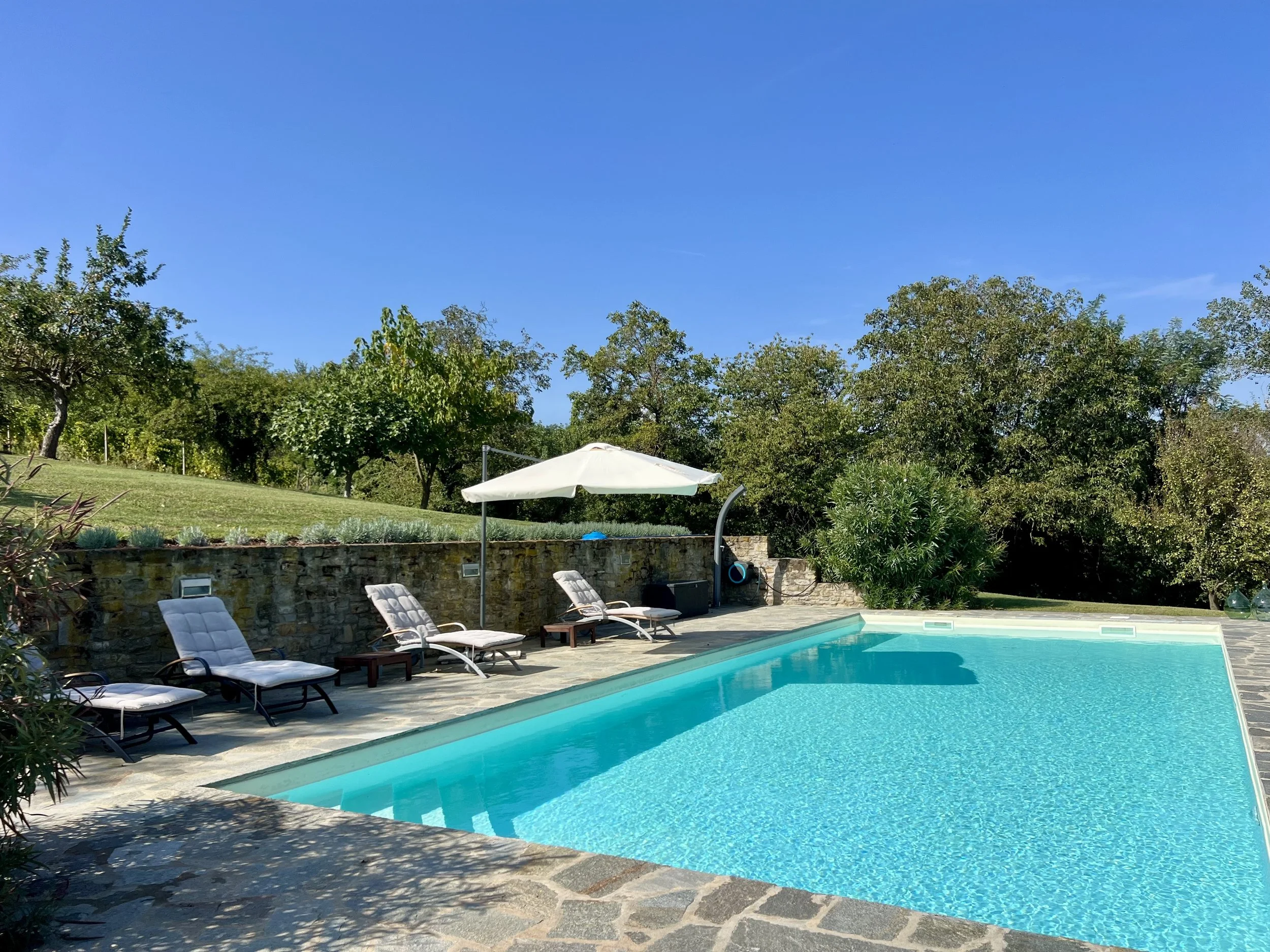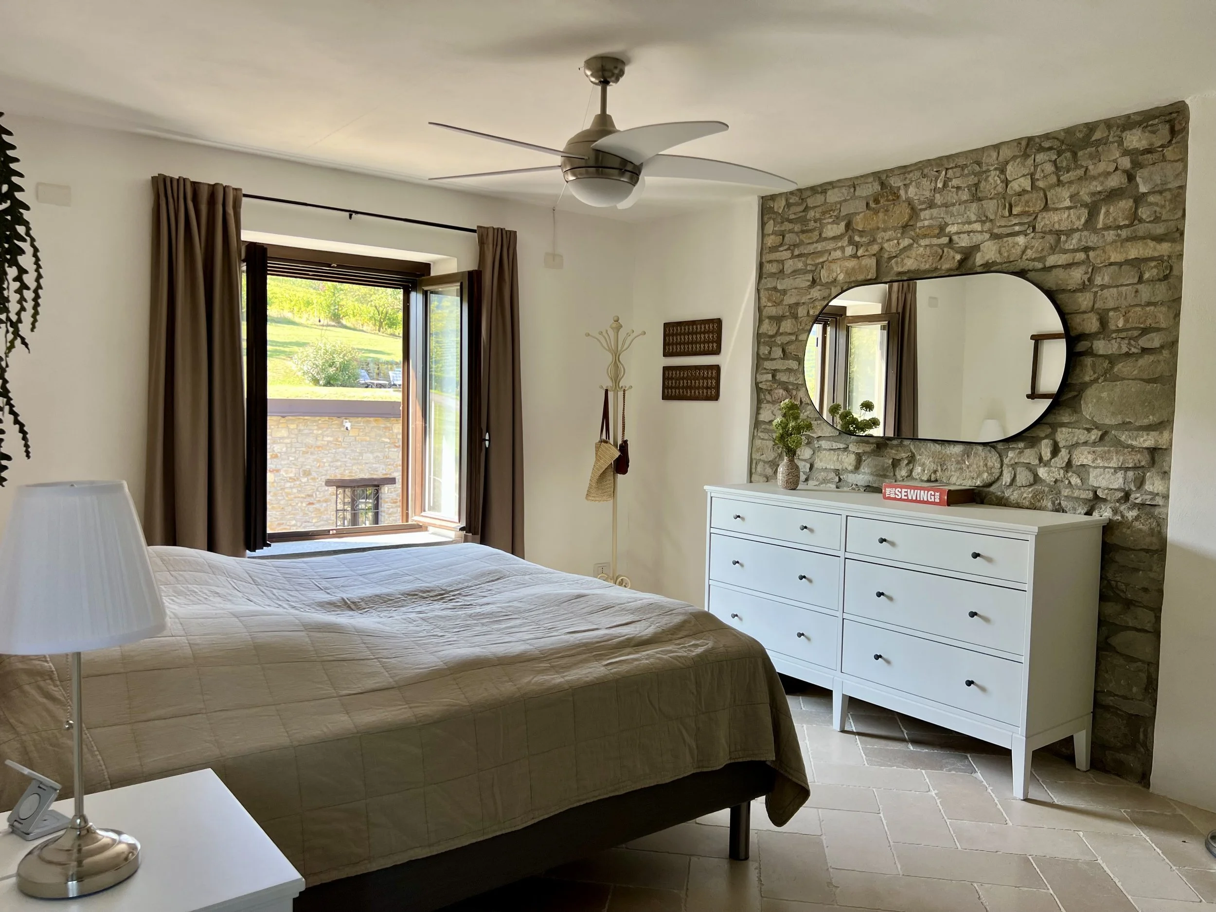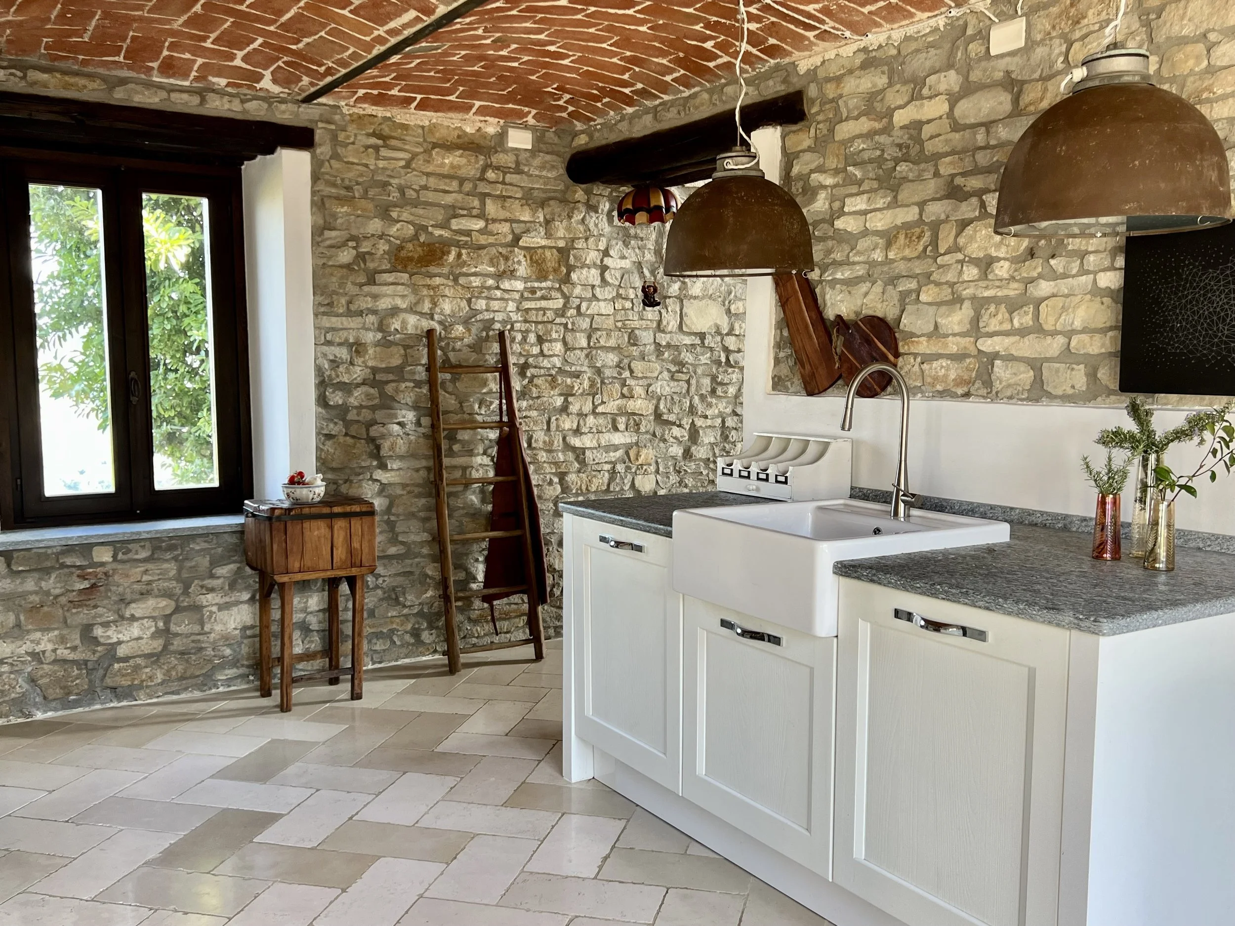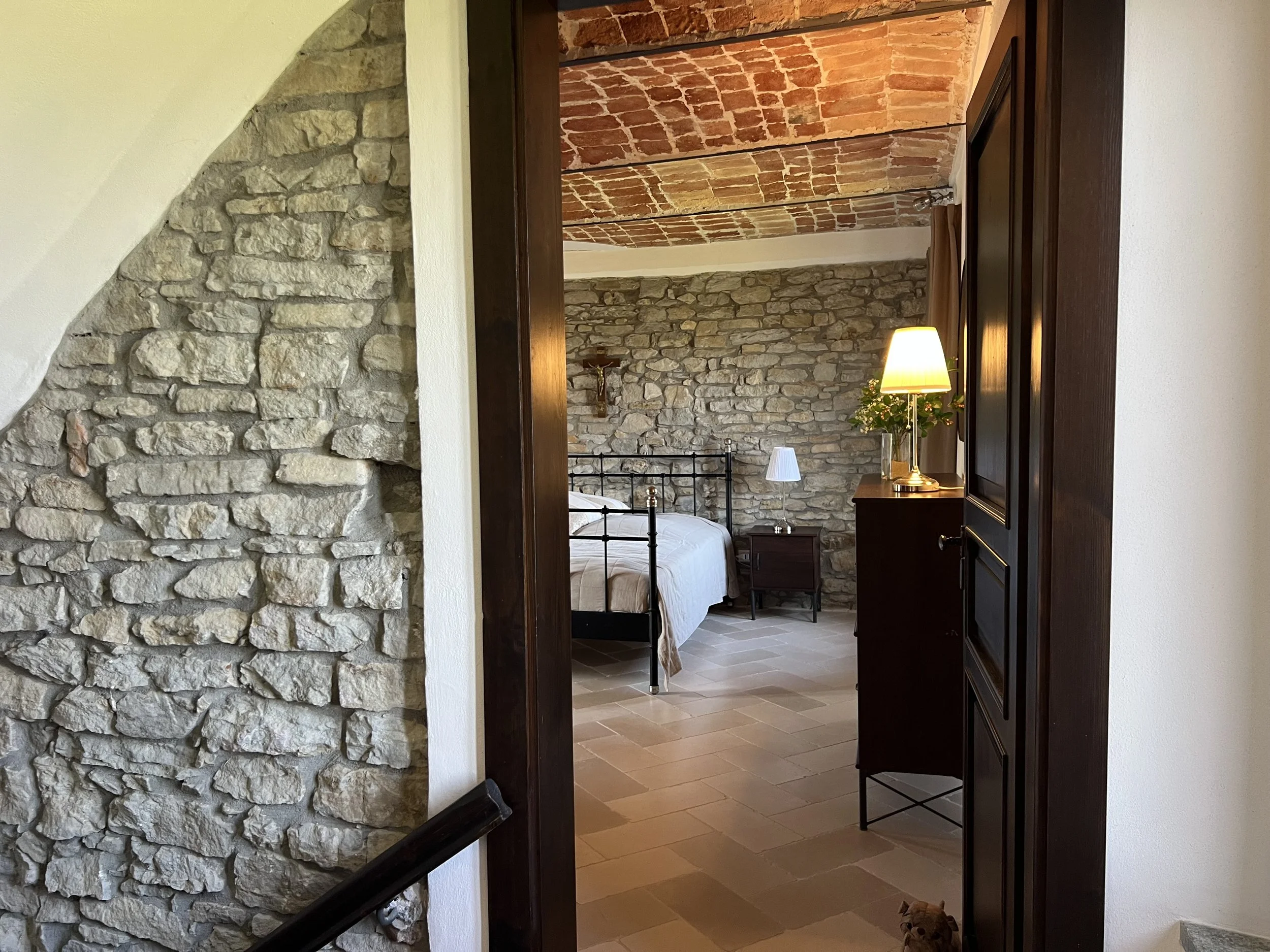 This beautiful house was completely refurbished to a high standard in 2014 and enjoys breathtaking views over the Unesco World Heritage vineyards and the surrounding hilltop villages. The century-old stone house is full of original details; stone walls, wood details, exposed wooden beams and classic brick lacework. The main house has all modern comforts, underfloor heating throughout and the property has an enchanting and welcoming feel.
